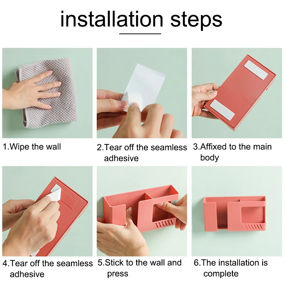 Бытовой Настенный контейнер для хранения без отверстий, держатель для хранения с дистанционным управлением, стеллаж для подключения телефона, держатели для зарядки