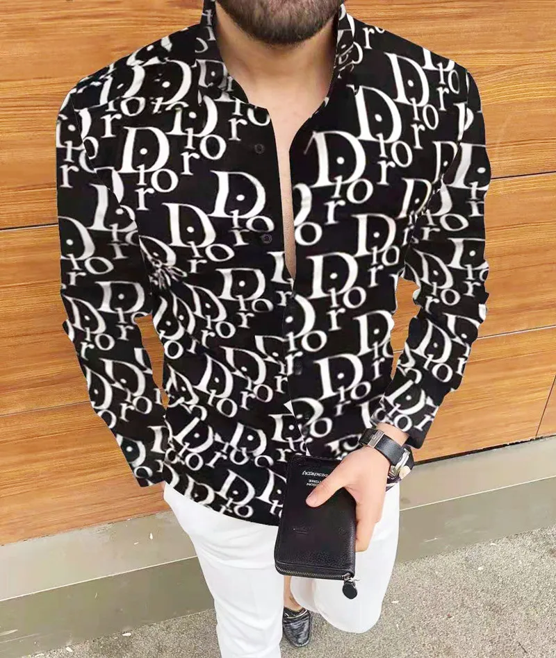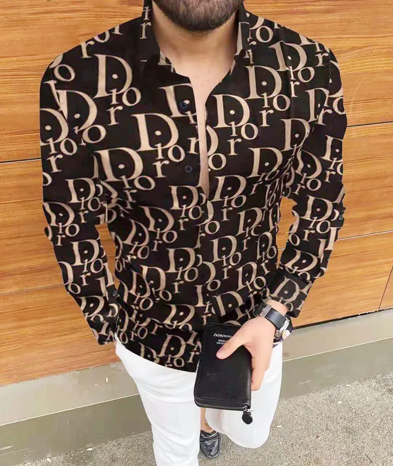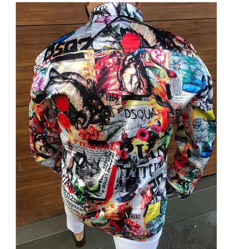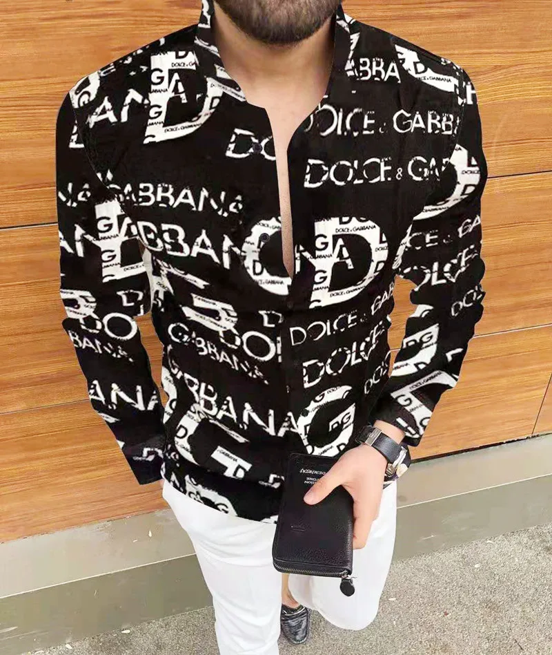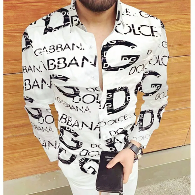 Лидер продаж, мужская рубашка в европейском и американском стиле, деловые повседневные модные брендовые топы с буквенным принтом, однобортный Кардиган, рубашка с длинным рукавом