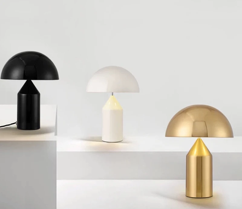 Скандинавская черно-белая Золотая Грибная настольная лампа для стола, гостиной, столовой, спальни, прикроватный металлический светодиодный светильник для украшения рабочего стола
