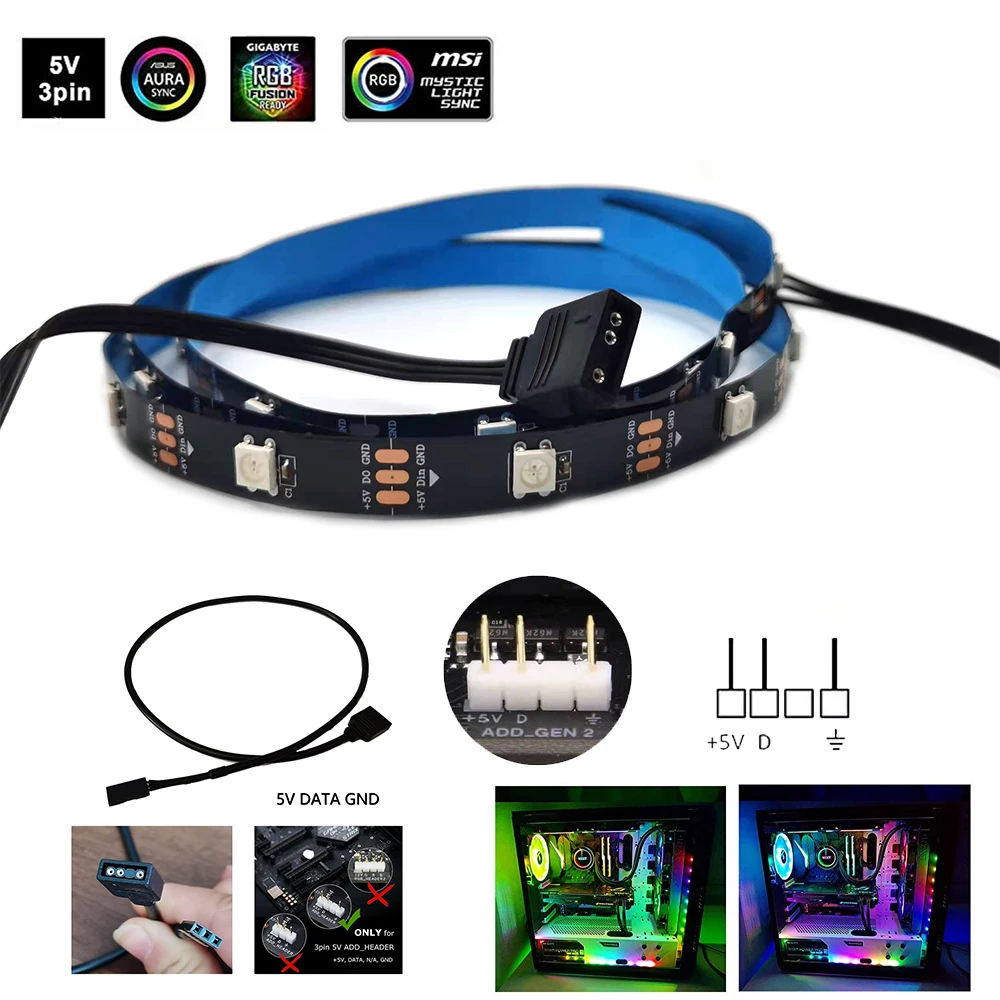 Адресная Радужная цифровая светодиодная лента для ПК, 5 В, 3 контакта, ARGB Header, ПК чехол Asus Aura Sync Gigabyte RGB Fusion MSI Mystic