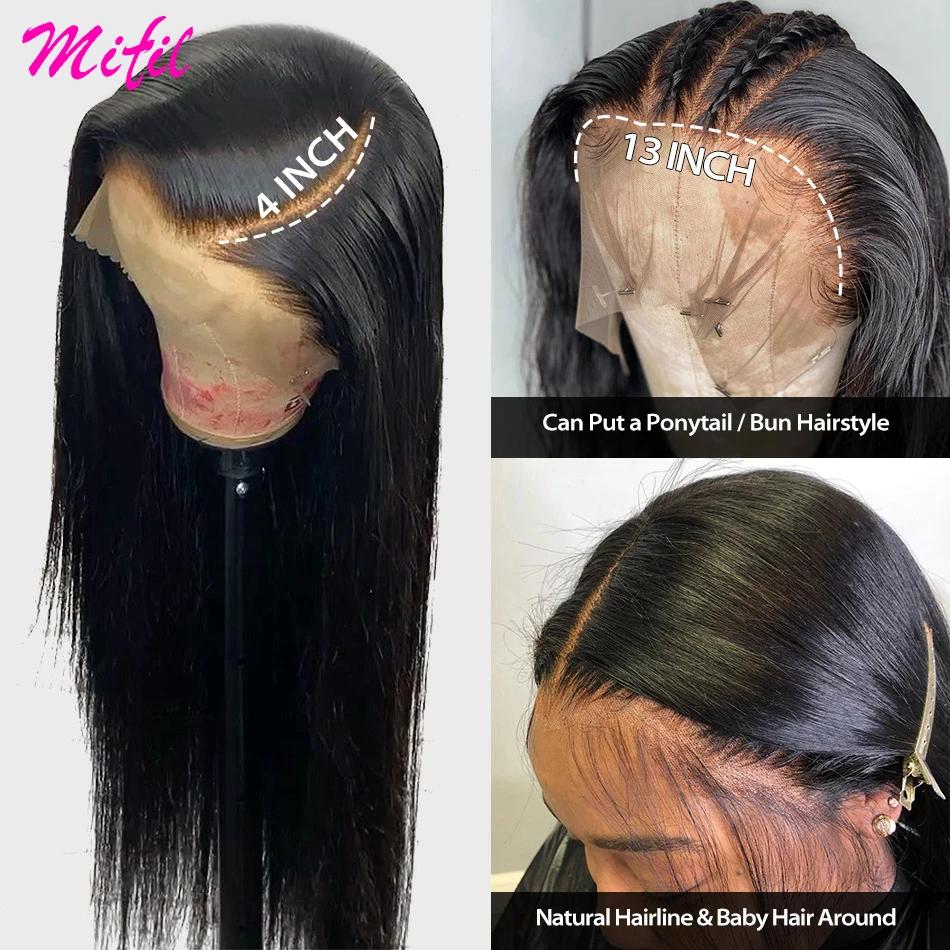 30, 40 дюймов, прямые парики на кружеве, бразильские, 13x4, Hd, кру...