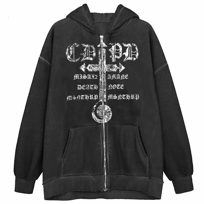 Женская толстовка в готическом стиле, свободная теплая толстовка большого размера с длинным рукавом и аниме принтом, на молнии, в стиле Харадзюку, Y2K