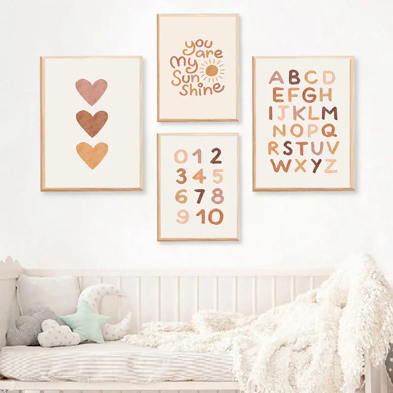Детские Настенные постеры солнце Радуга Холст Картина Алфавит печать номер постер скандинавские настенные художественные фотографии для детской комнаты украшения