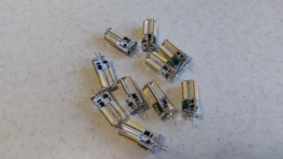 Лампочки G4 DC12V 9Вт по факту оказались на 2,4Вт . Не обманывайте народ.