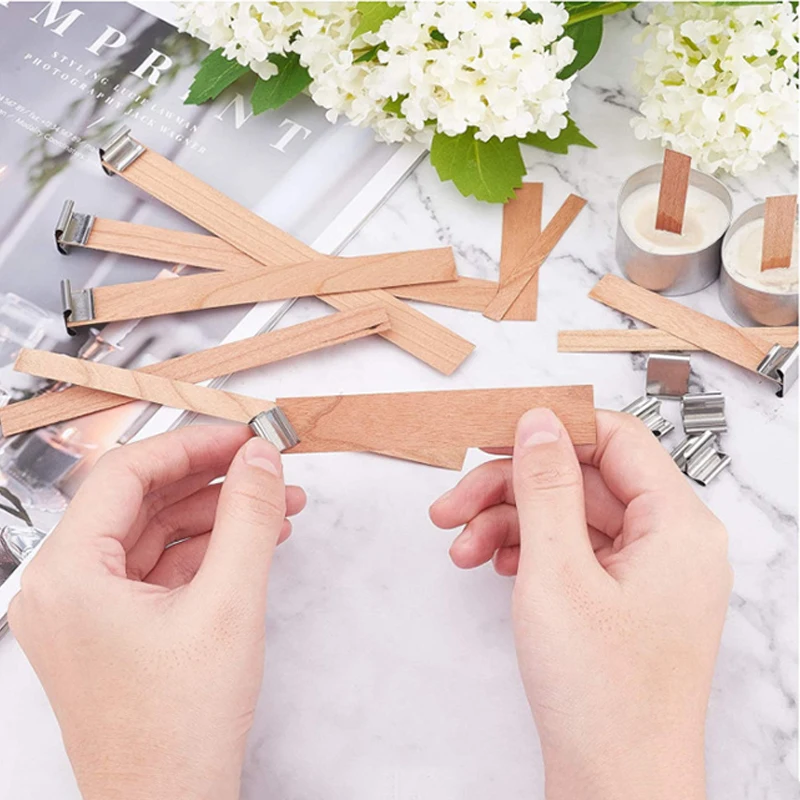 Деревянные фитили для свечей с железными подставками, 30 шт., натуральный экологически чистый фитиль для изготовления свечей и поделок для свечей