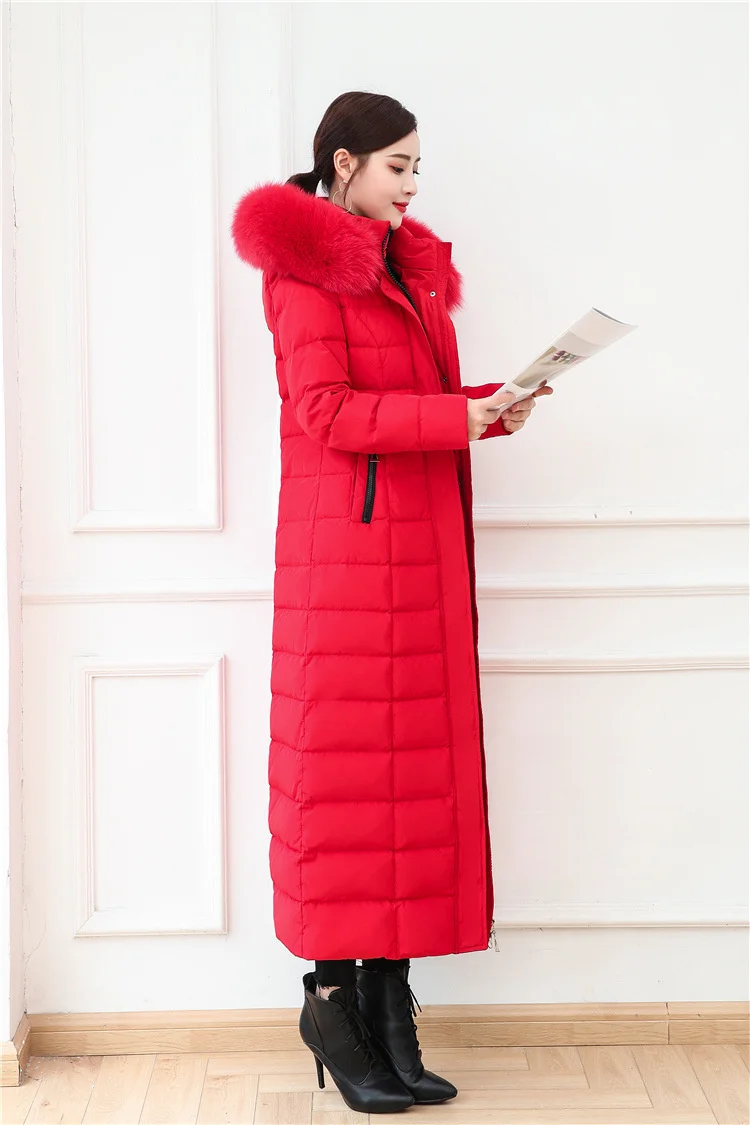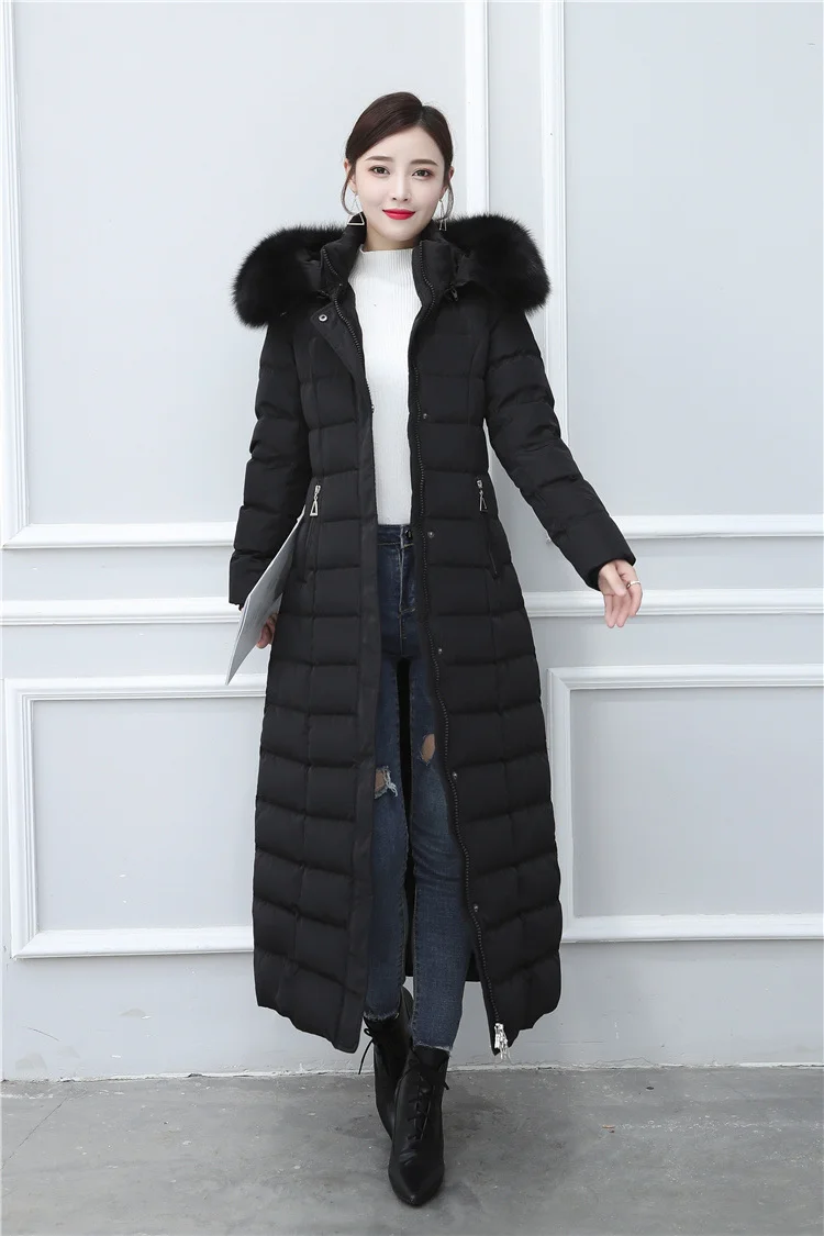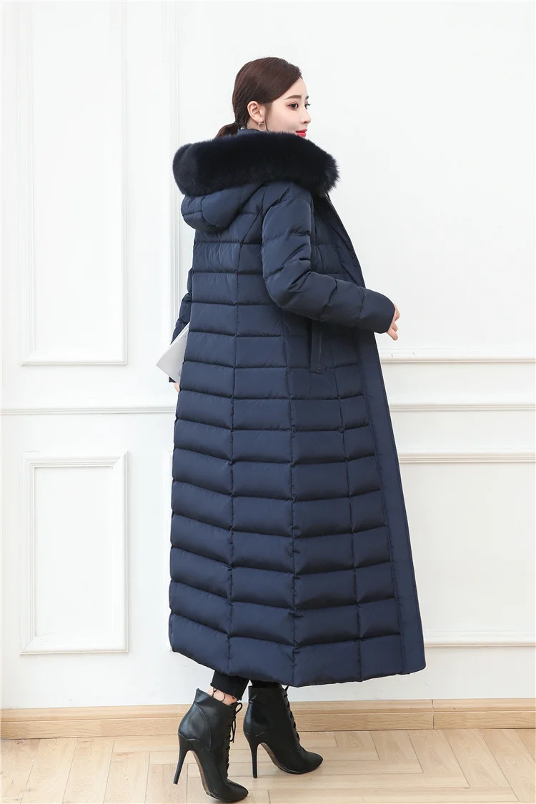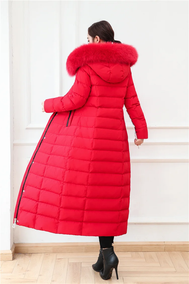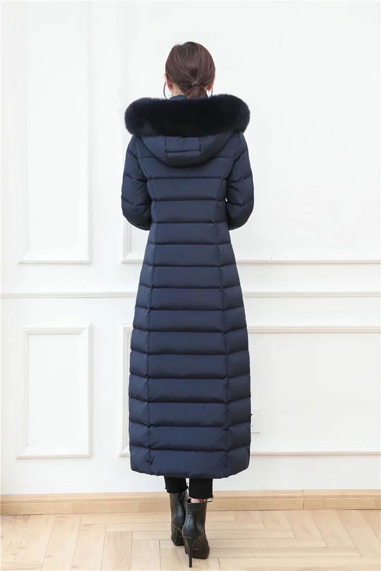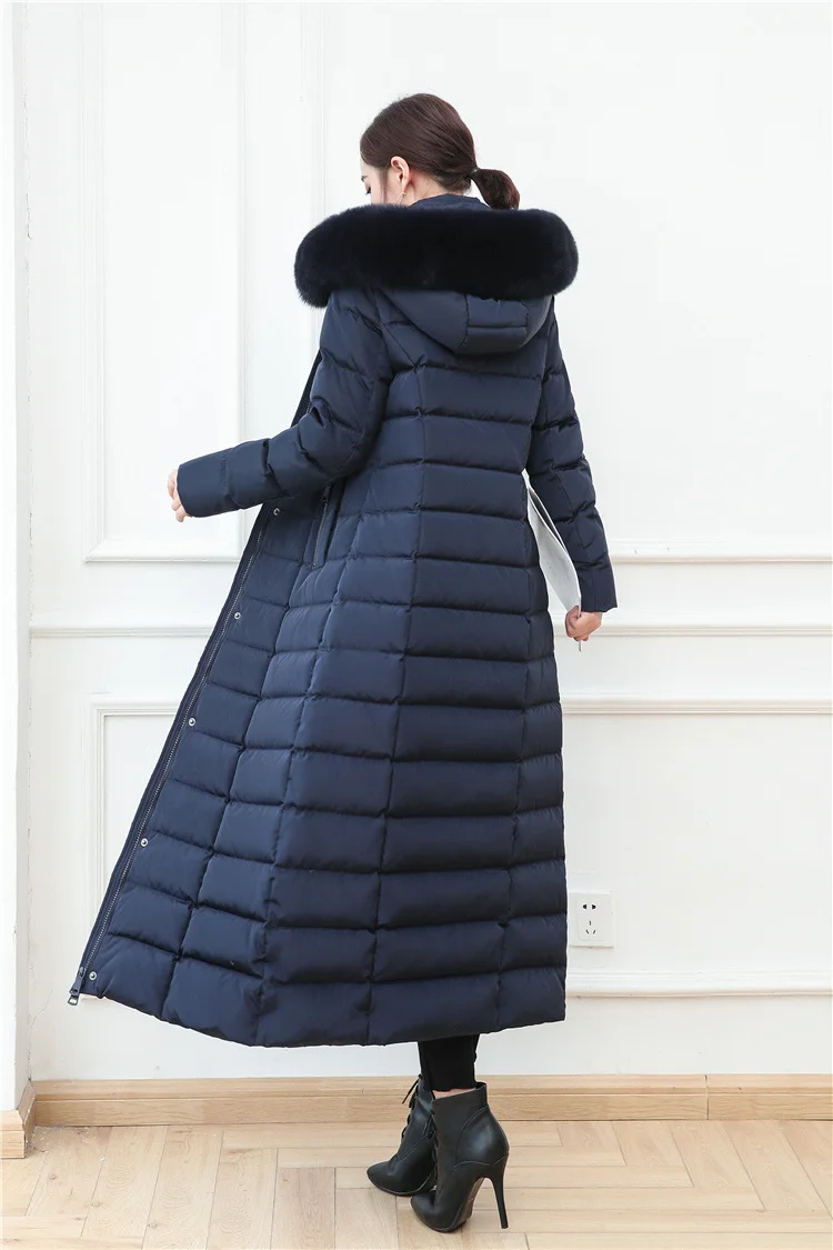 Женский зимний пуховик, Женское пальто на утином пуху с капюшоном из натурального Лисьего меха, женские длинные зеленые парки, пальто для женщин 001