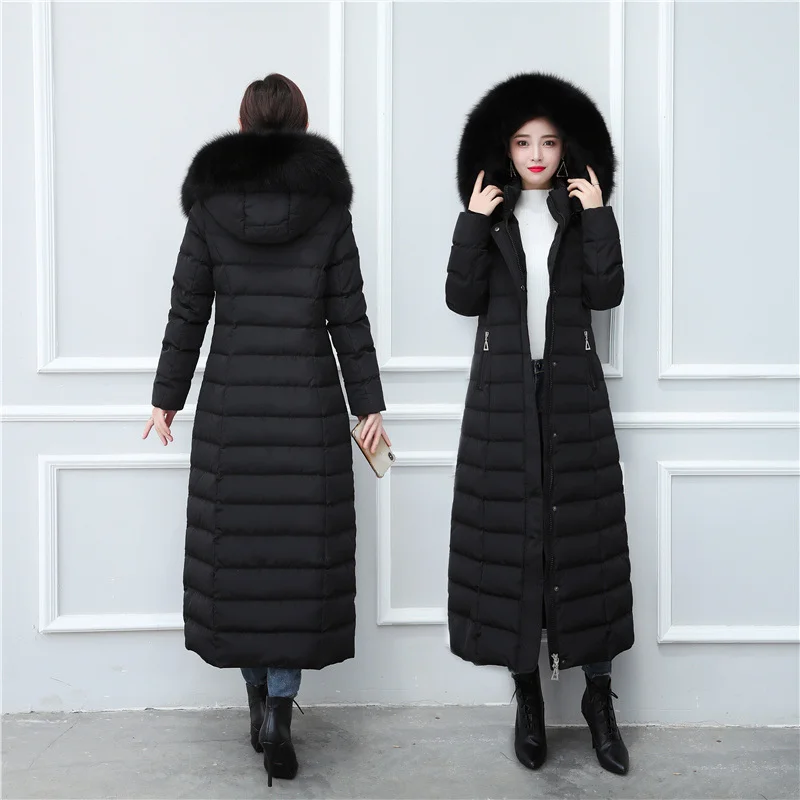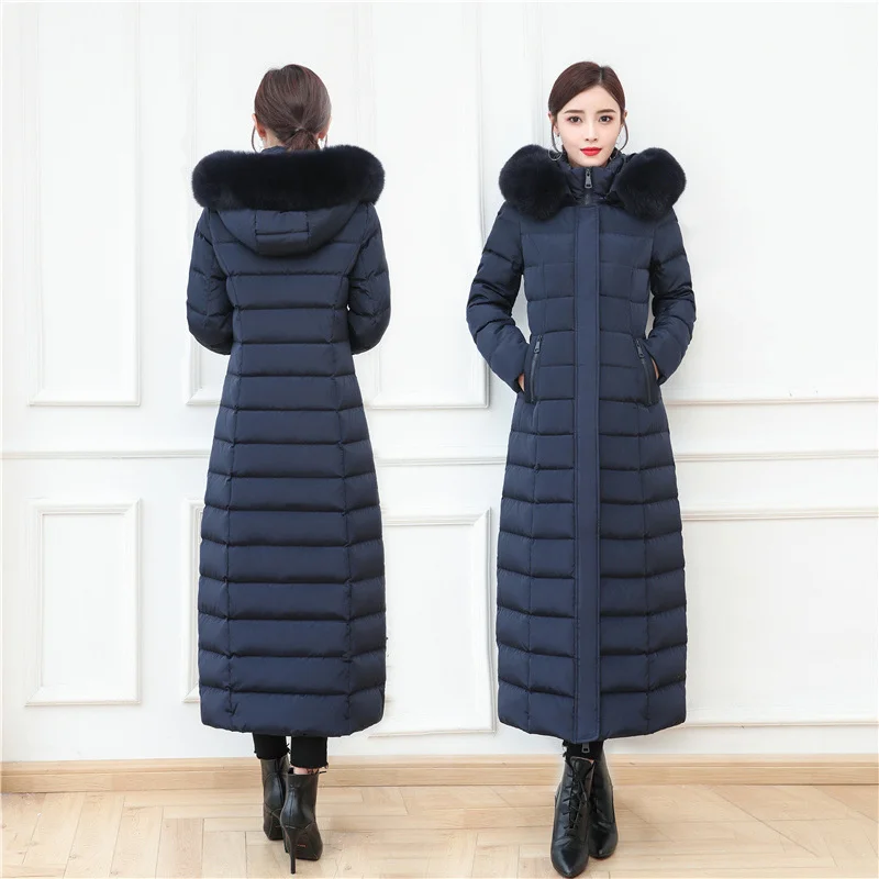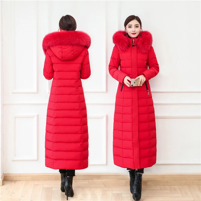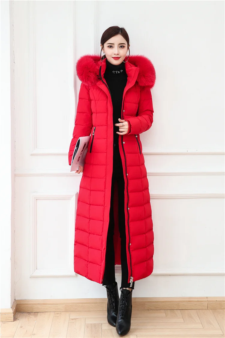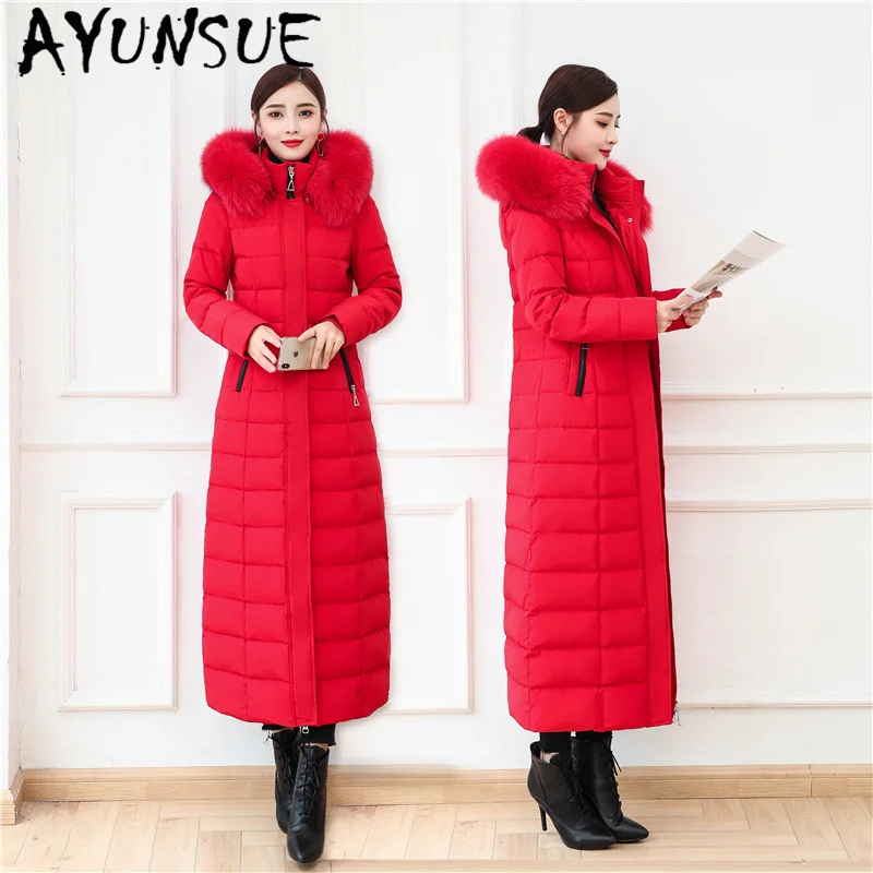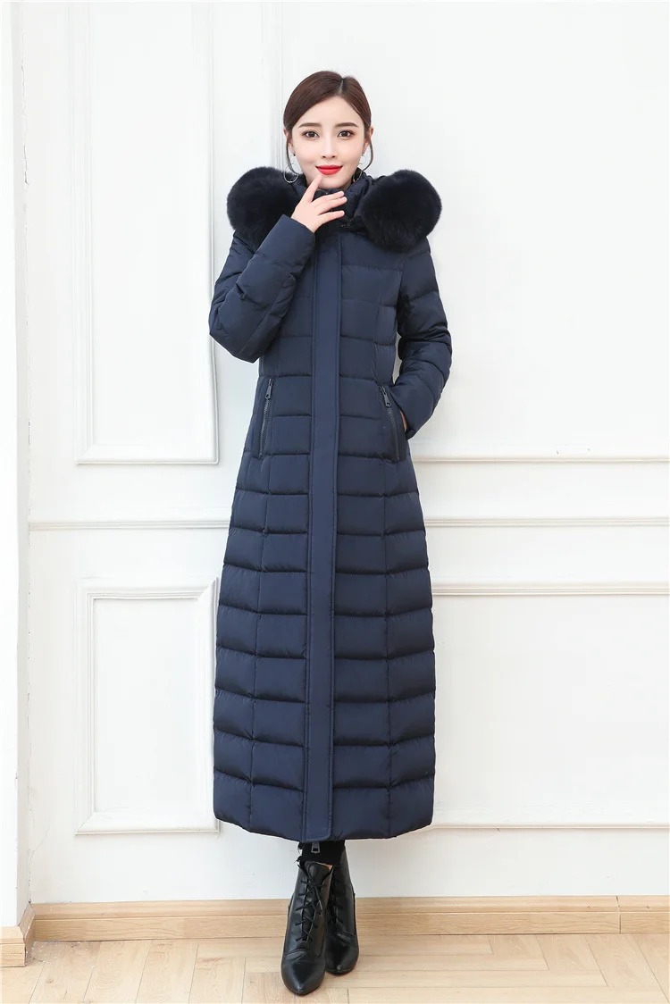 Женский зимний пуховик, Женское пальто на утином пуху с капюшоном из натурального Лисьего меха, женские длинные зеленые парки, пальто для женщин 001
