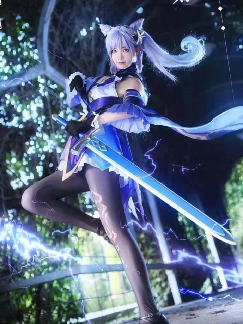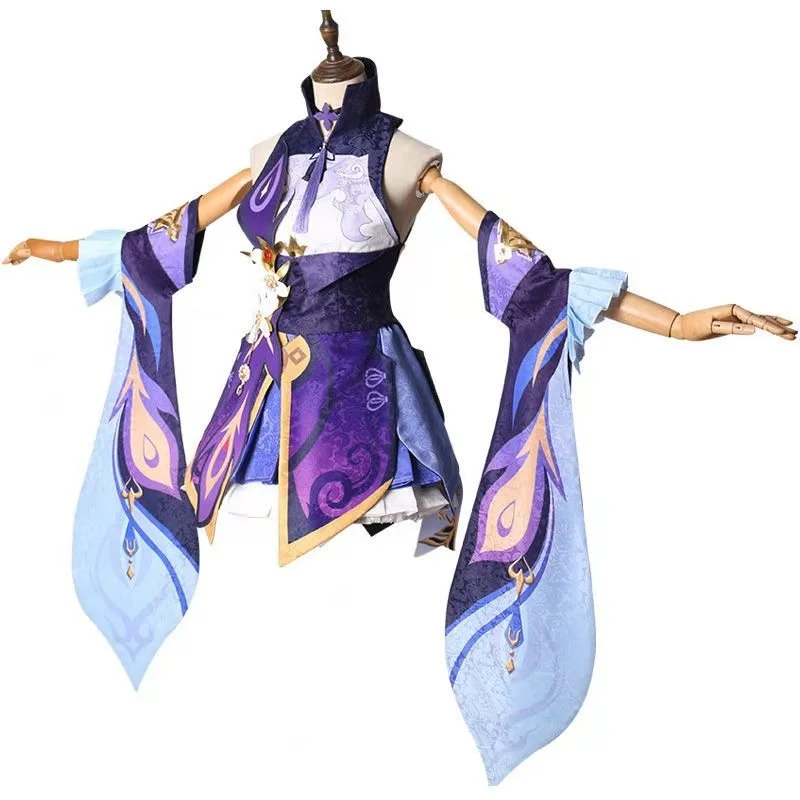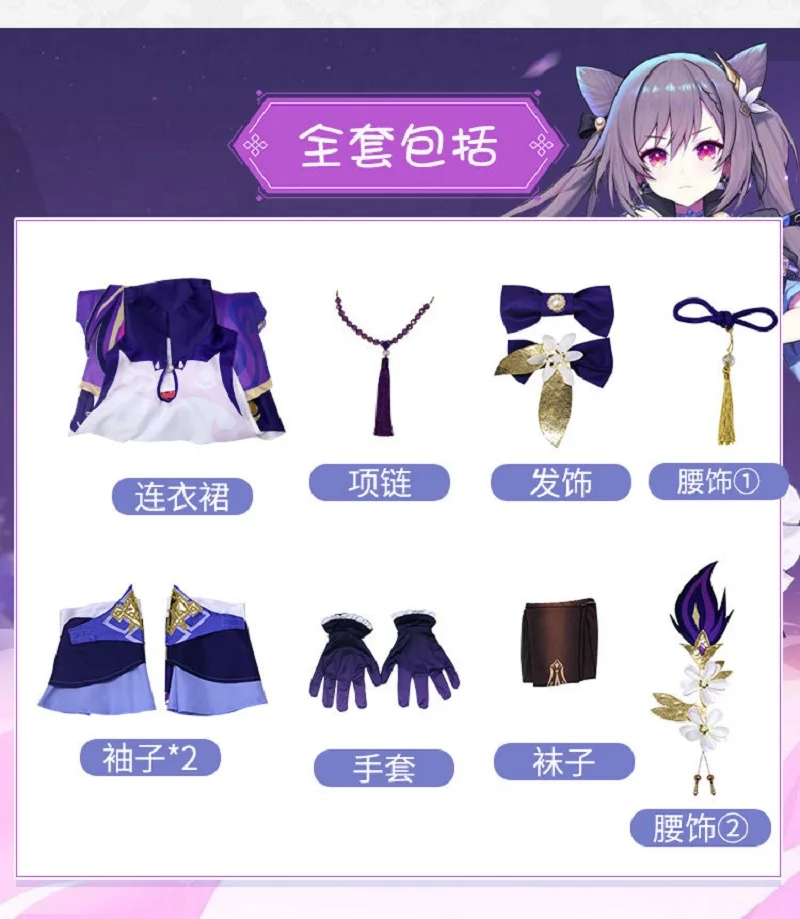 Костюм для косплея Genshin Impact Keqing, Униформа, платье, реквизит, набор аксессуаров