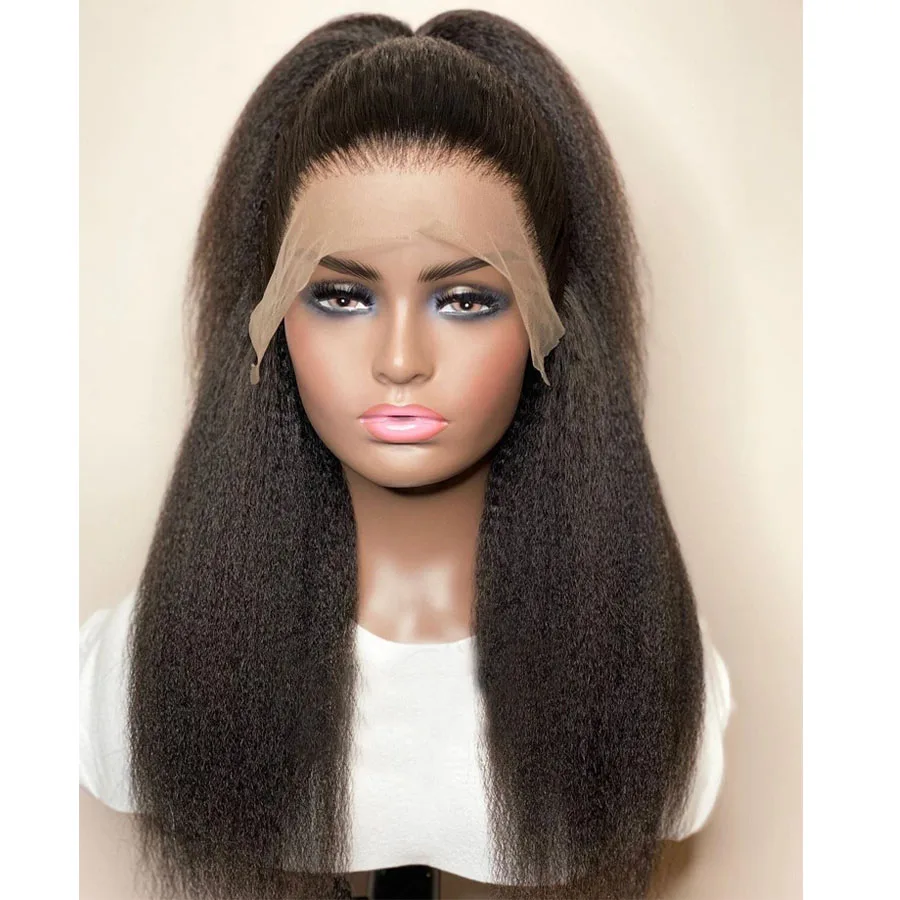 180% Плотность длинный Yaki прямой кружевной передний парик для жен...