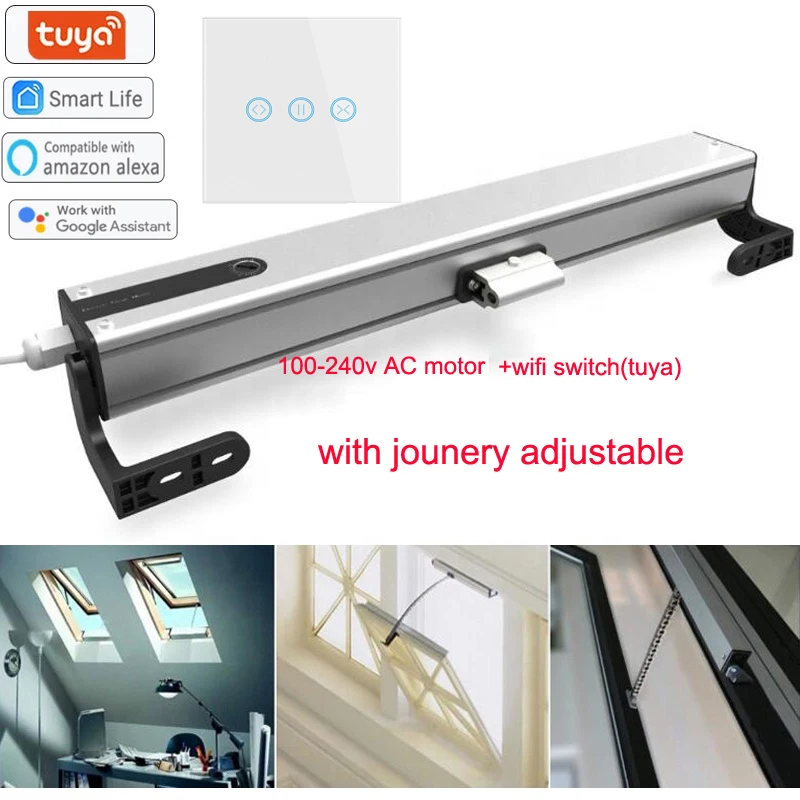 -Широкий вход напряжения 100-240 В переменного тока, подходит для всех стран.-Регулируемая длина стрейч 100-400 мм.-Подходит для окон размером 470 мм.-Долговечность, срок службы более 10000 раз открываются и закрываются.-Двухслойная цепь из нержавеющей стали, работает плавно.-Два огнестойких держателя из АБС-пластика и направляющая для скольжения POM делают двигатель более тихим и безопасным.-Легко устанавливается и снимается.