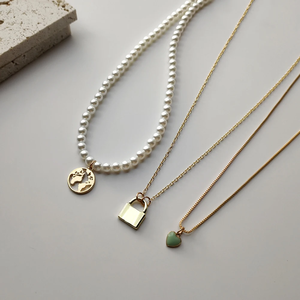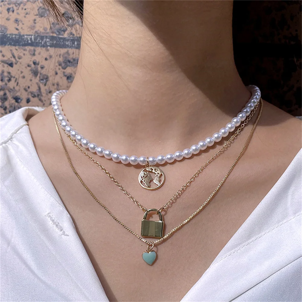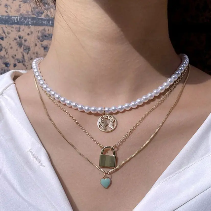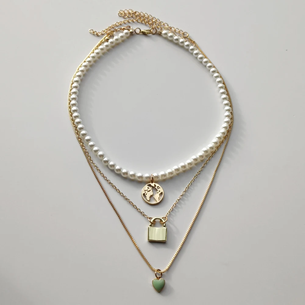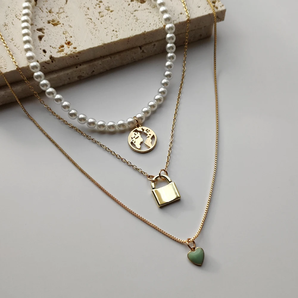 Женское многослойное ожерелье с подвеской в виде карты мира