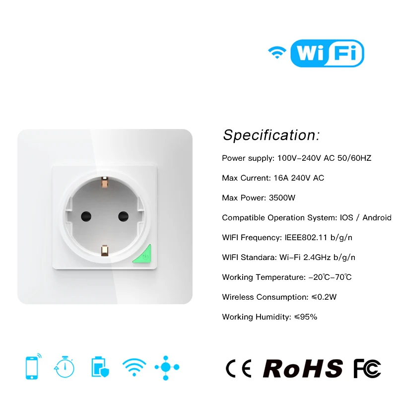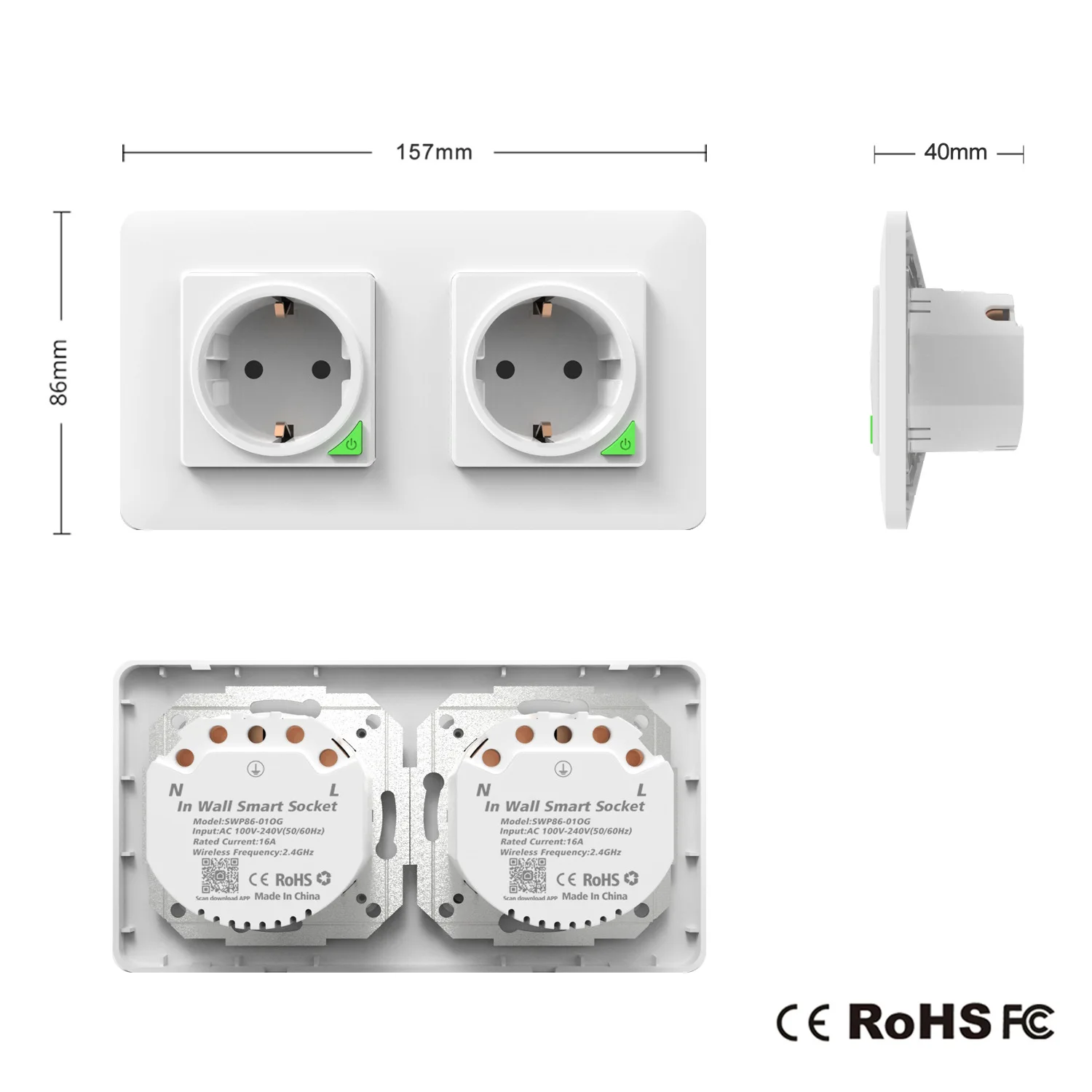 Смарт-розетка настенная с голосовым управлением, 16 А, Wi-Fi