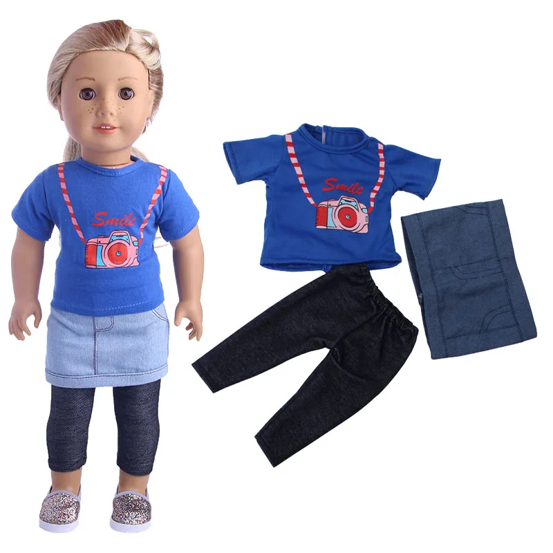 Синий костюм из рубашки + короткой юбки + брюк, подходит для новорожденных 43 см, Nenuco 42 см, аксессуары для кукол для девочек 18 дюймов