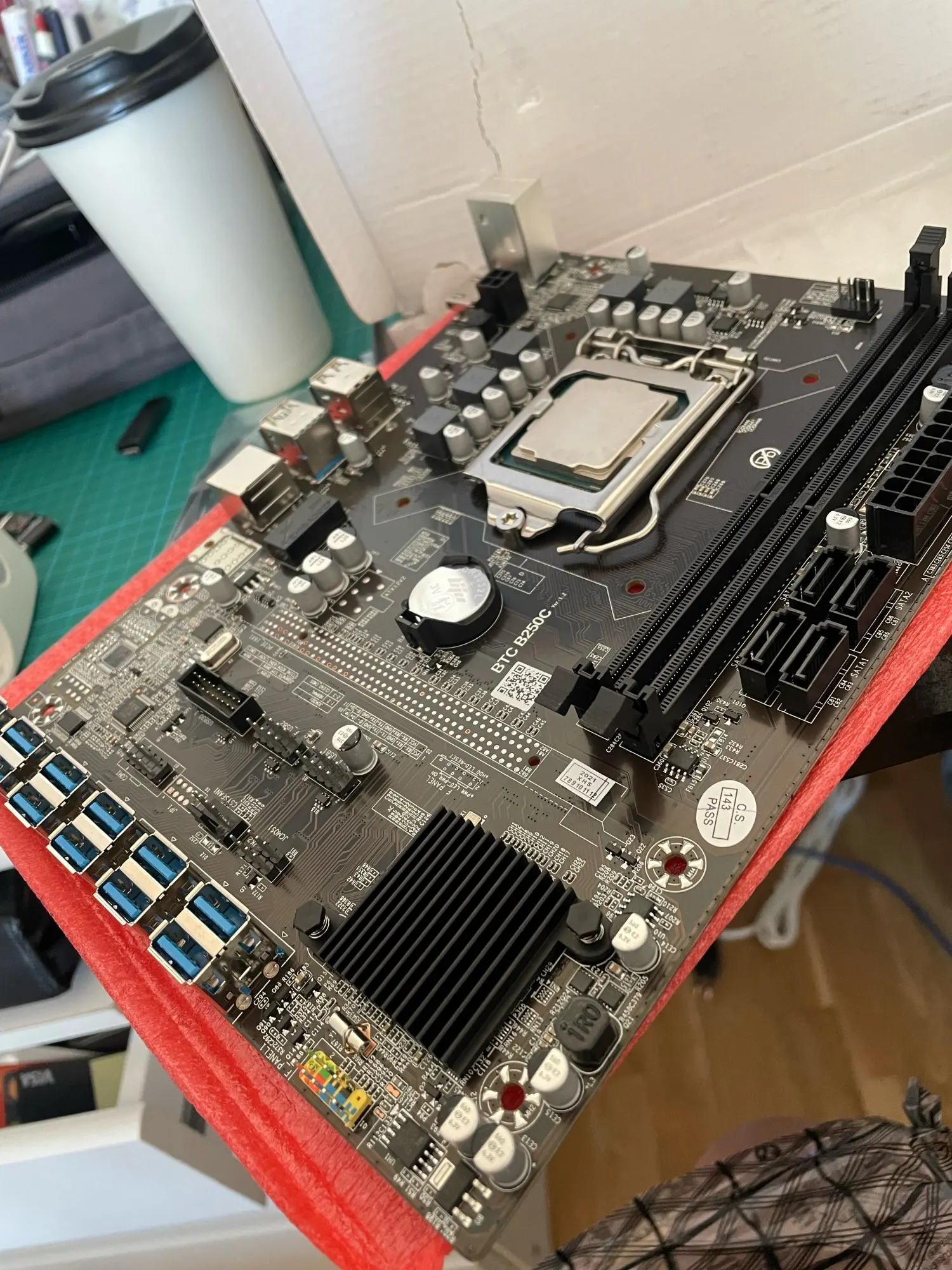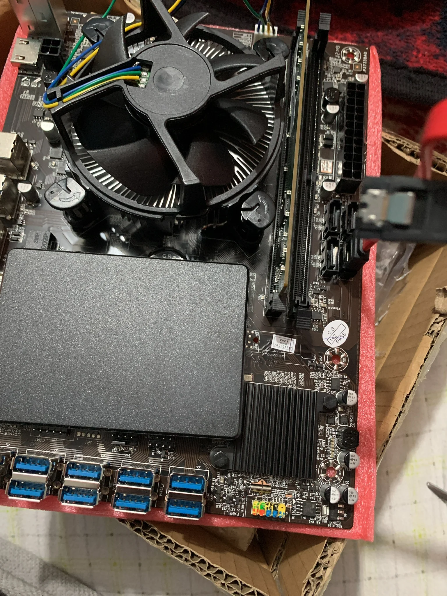 Все работает хорошо, ссд нулёвый - новенький. Проц оригинальный, но с какими-то непонятными следами, как будто б/у, оперативка - рабочая. Из минусов - если выключить плату от питания и переставить, к примеру, всего один юсб из 8 в 10 гпу, все остальные перемешиваются абсолютно рандомно. Т.е в гпу 1 стоит карта на хюниксе, и этот разъём никто не трогает, при смене 8 и 10, гпу 1 тоже слетает куда-нибудь на гпу 5, а на ее месте встаёт рандомный микрон/Самсунг, при этом хэйв запоминает разгон как для хюникса и он накладывается на микрон. Так как хайв привязвается к разъёму юсб и приходятся перетряхивать весь разгон для абсолютно всех карт, очень не удобно на этапе сборки. После сборки если ничего не трогать - все работает. И при перезагрузке тоже все остаётся на своих местах если не трогать юсб.