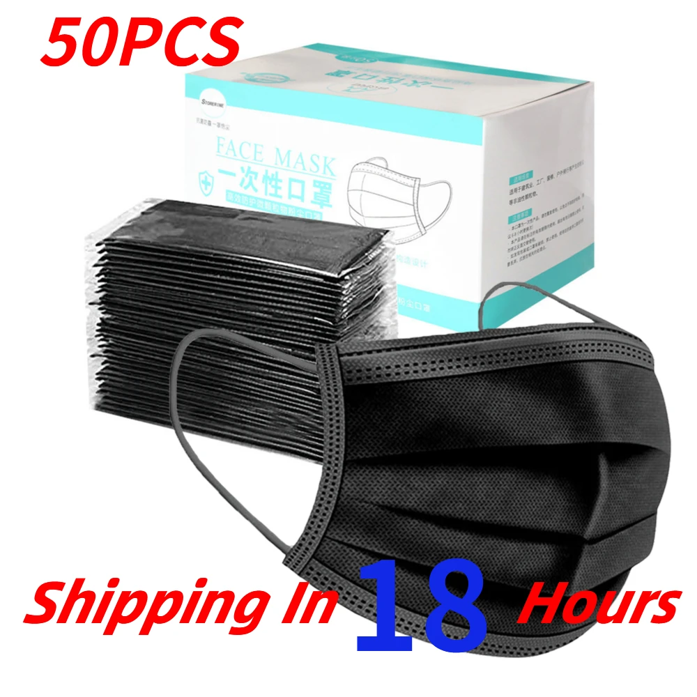 Индивидуальная упаковка; Одноразовые маски 50 шт.кор. рта крышка маски нетканый 3 слойная маска для лица синий черного, розового и белого цвета фиолетового и зеленого цвета