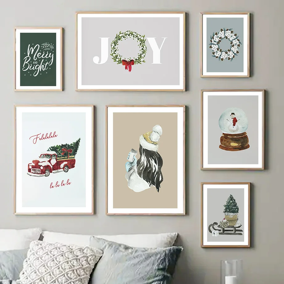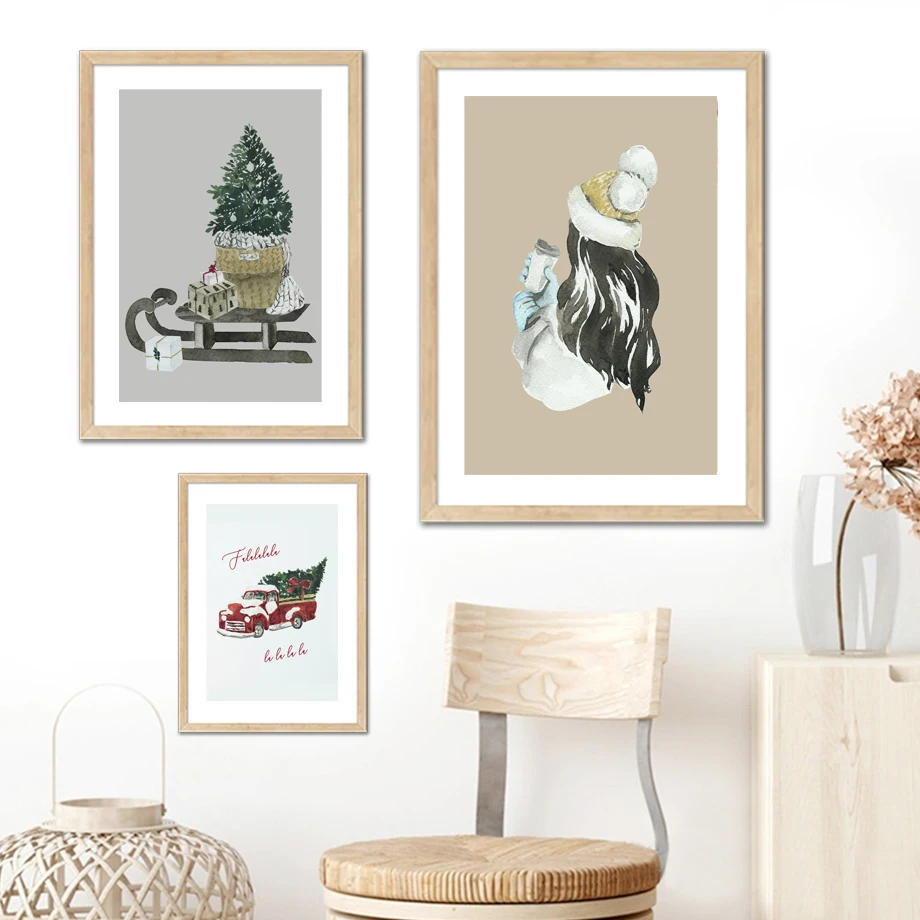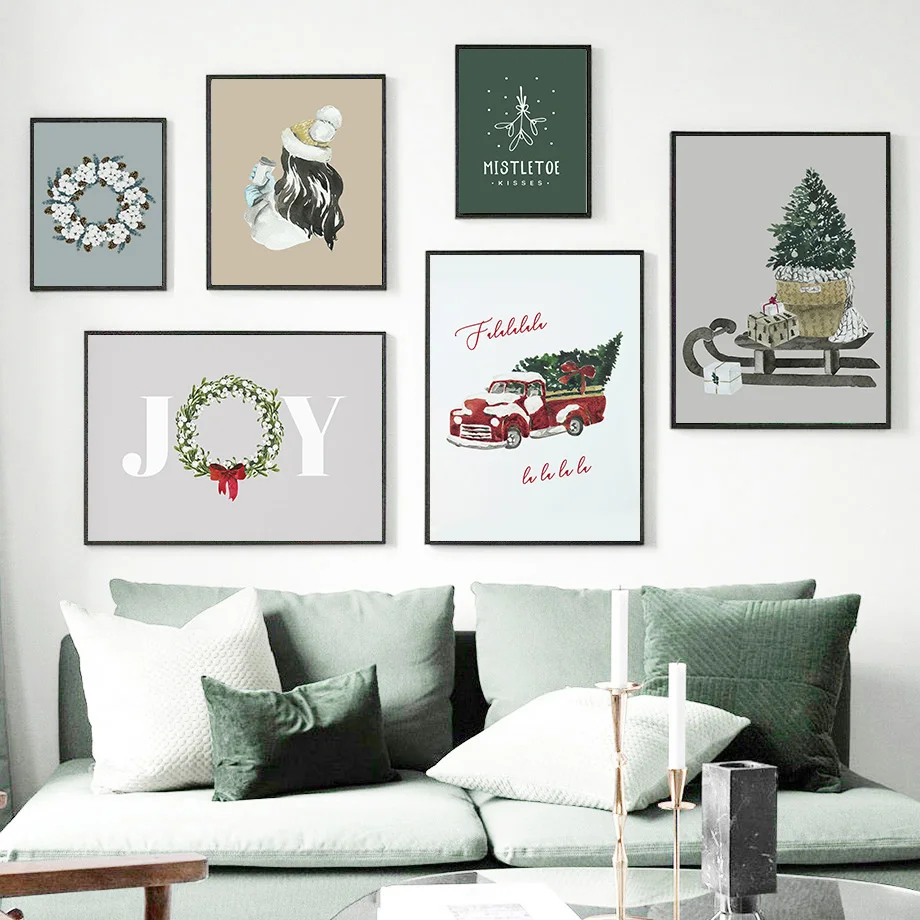 Рождественские настенные картины с изображением грузовика и автомоб...