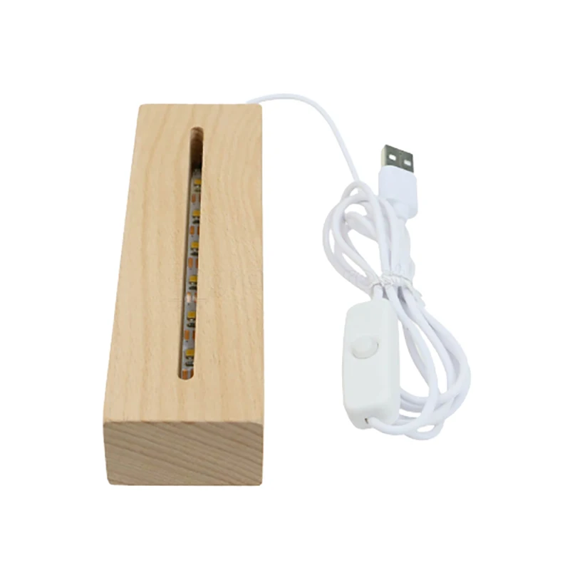 Длинная светильник ительная стойка из смолы с деревянным основанием, питание от USB, основа для лампы теплого белого цвета RGB, 3D акриловый ночник, дисплей, деревянная подставка со светильник кой s
