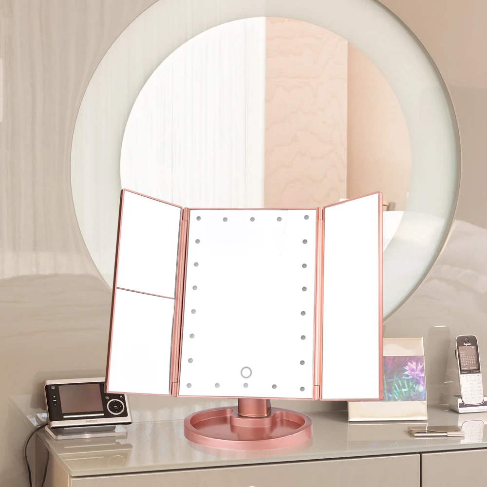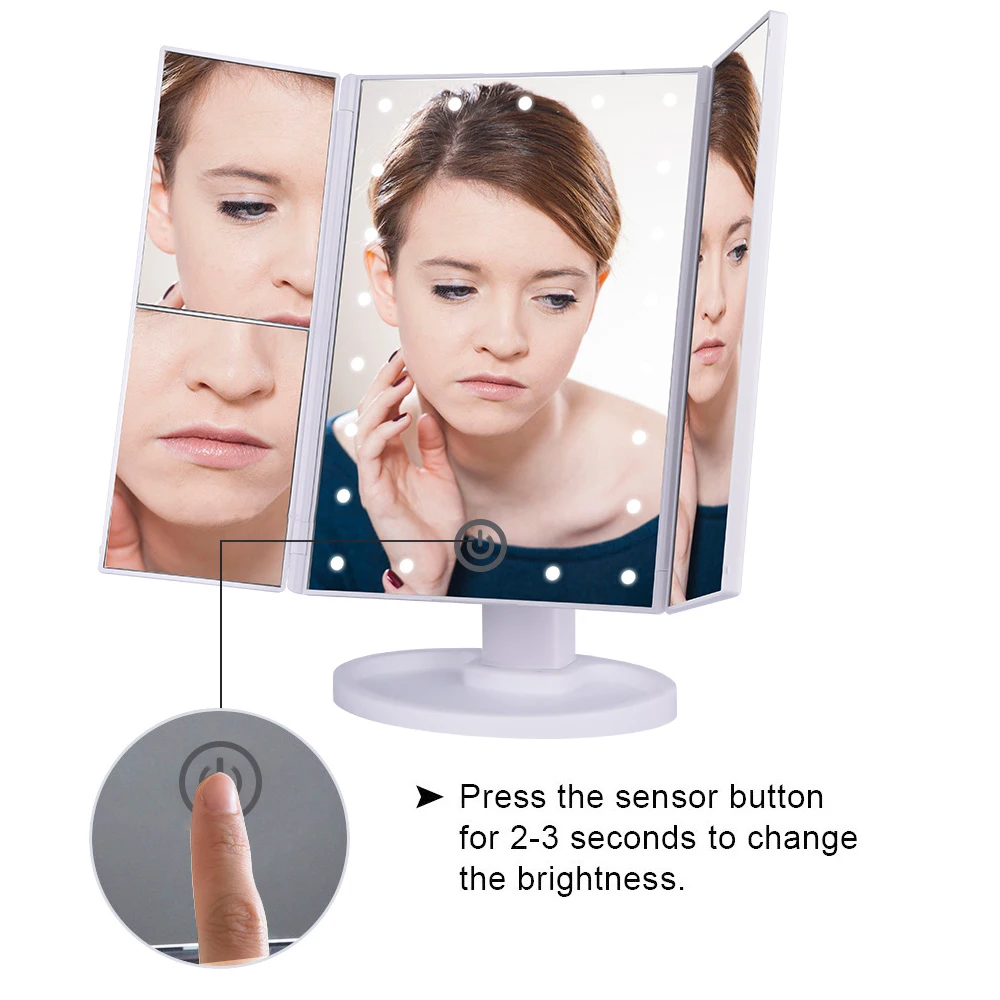 Двухсторонний складной 22 светодиодный светильник s, заполняющий макияж, светильник, зеркало, три раза, сенсорный экран, увеличение, регулируемый, дорожный стол, зеркало для макияжа, домашнее изделие