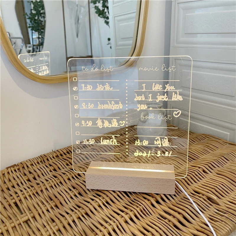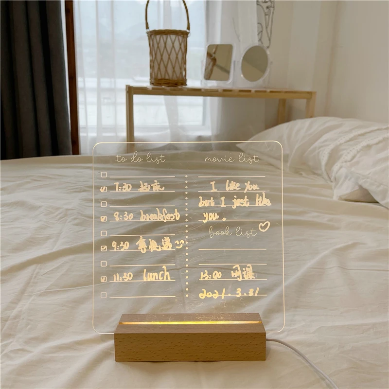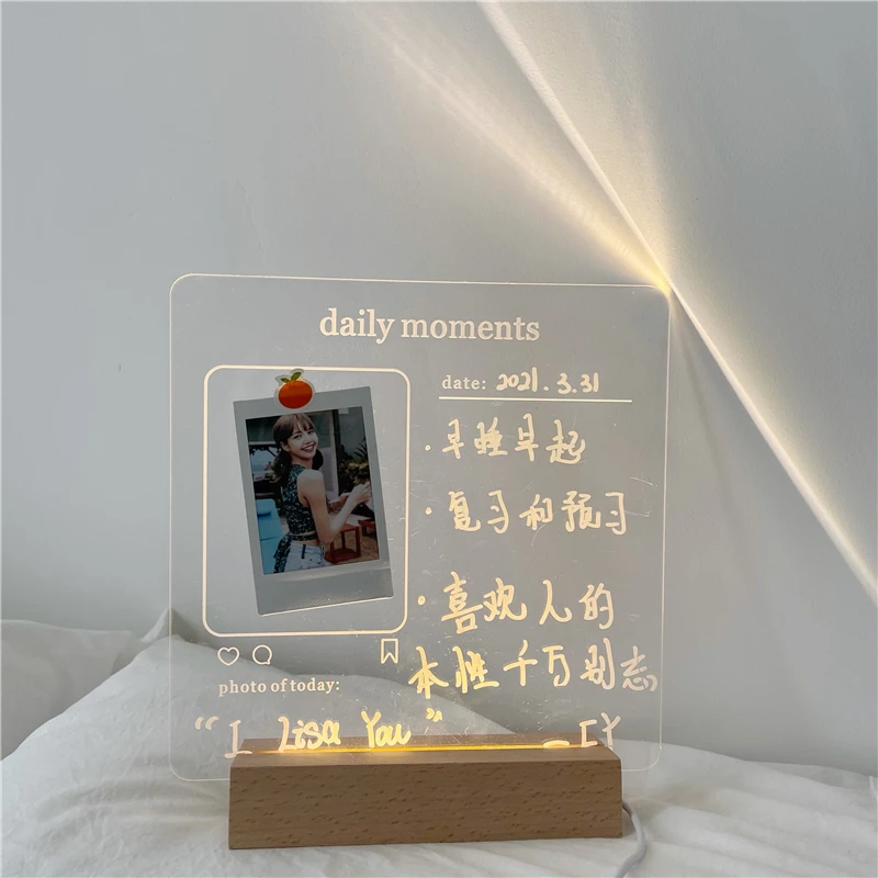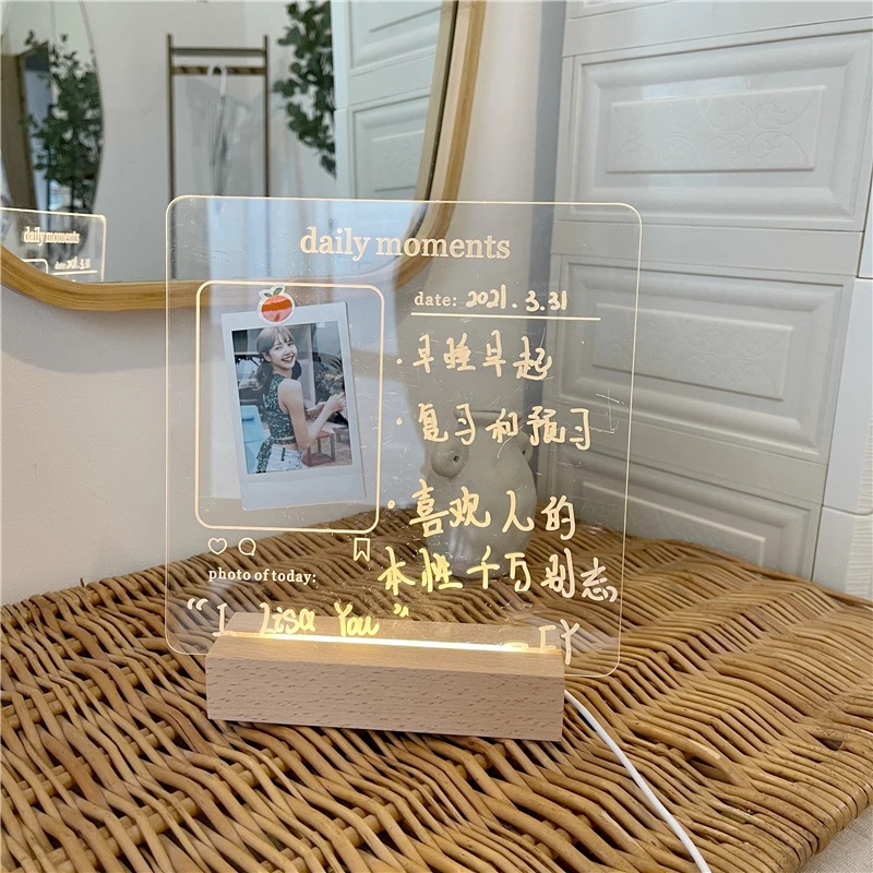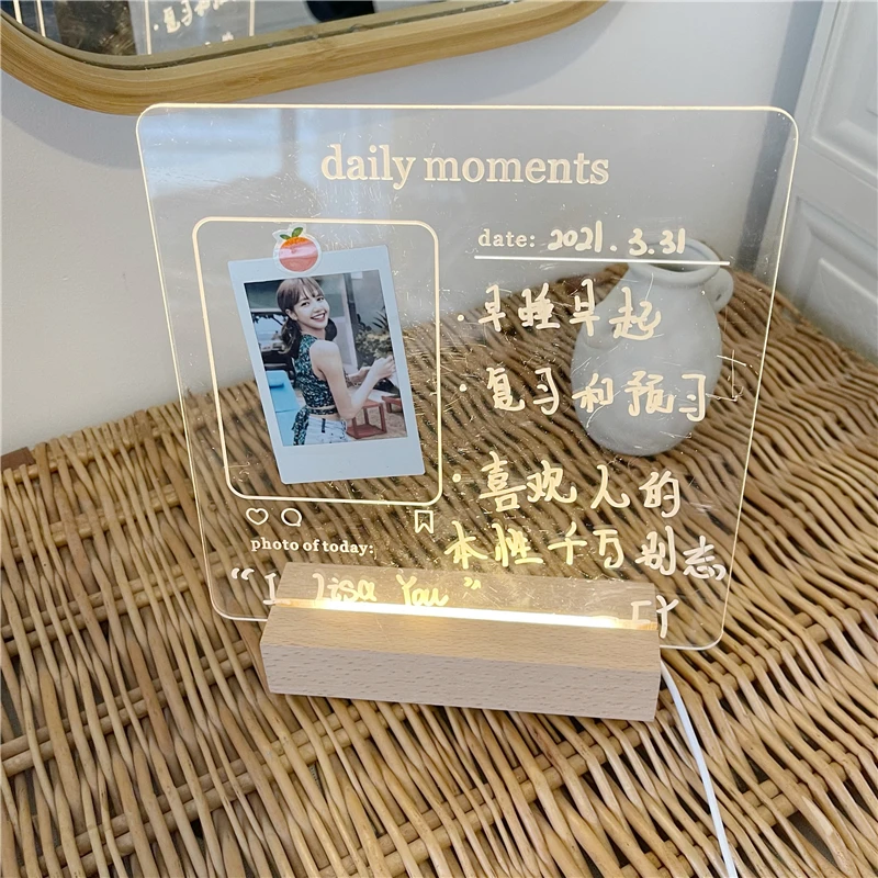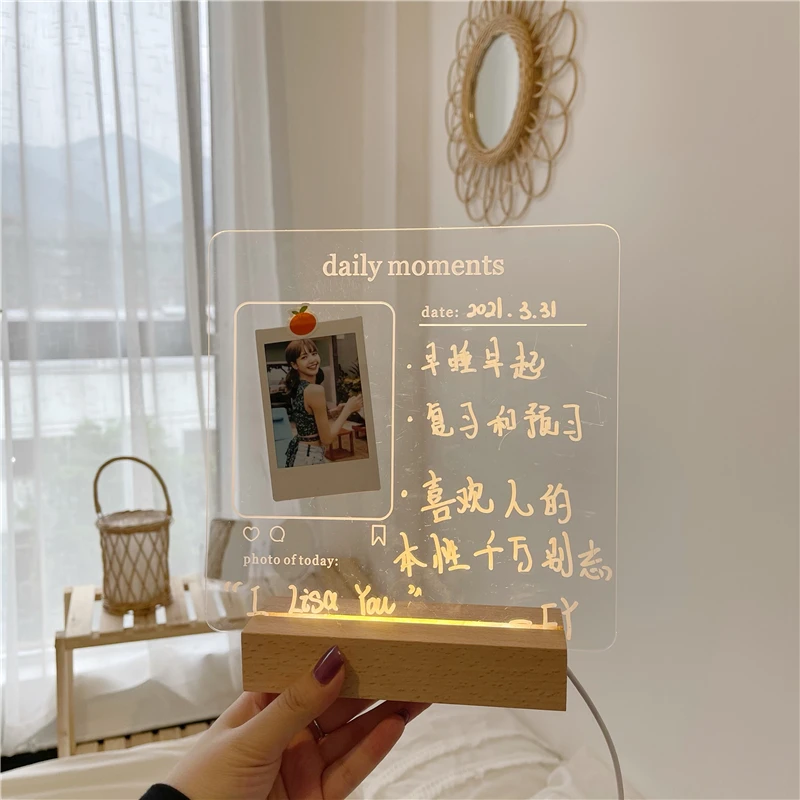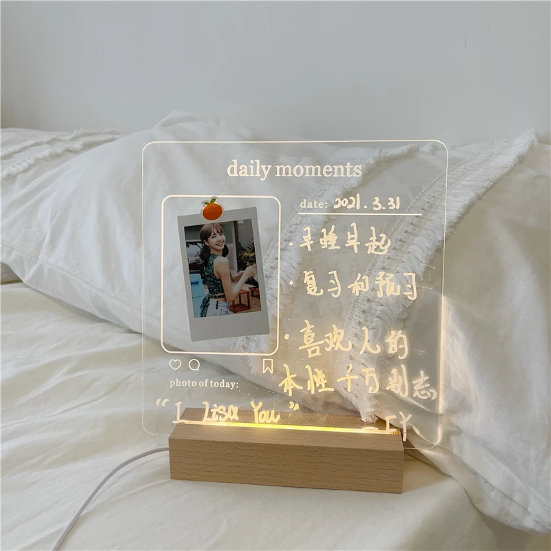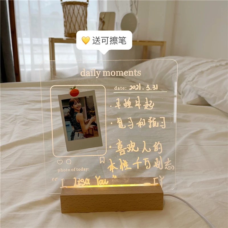 USB акриловая доска для ежедневных фотографий, записей и объявлений с деревянной подставкой, набор ламп, креативные школьные канцелярские товары для работы