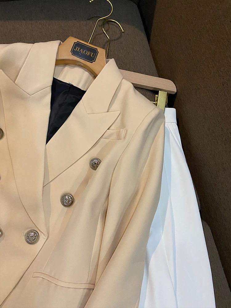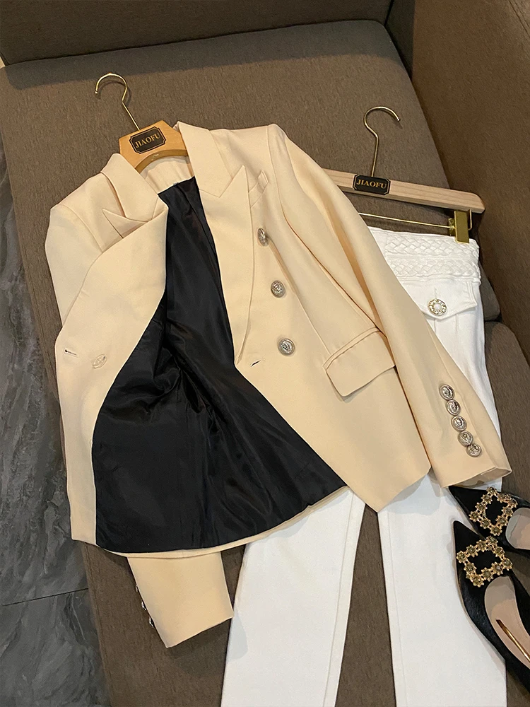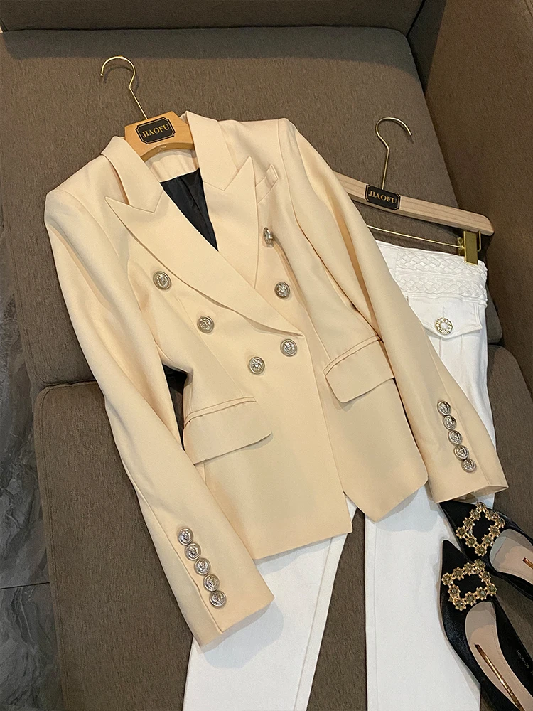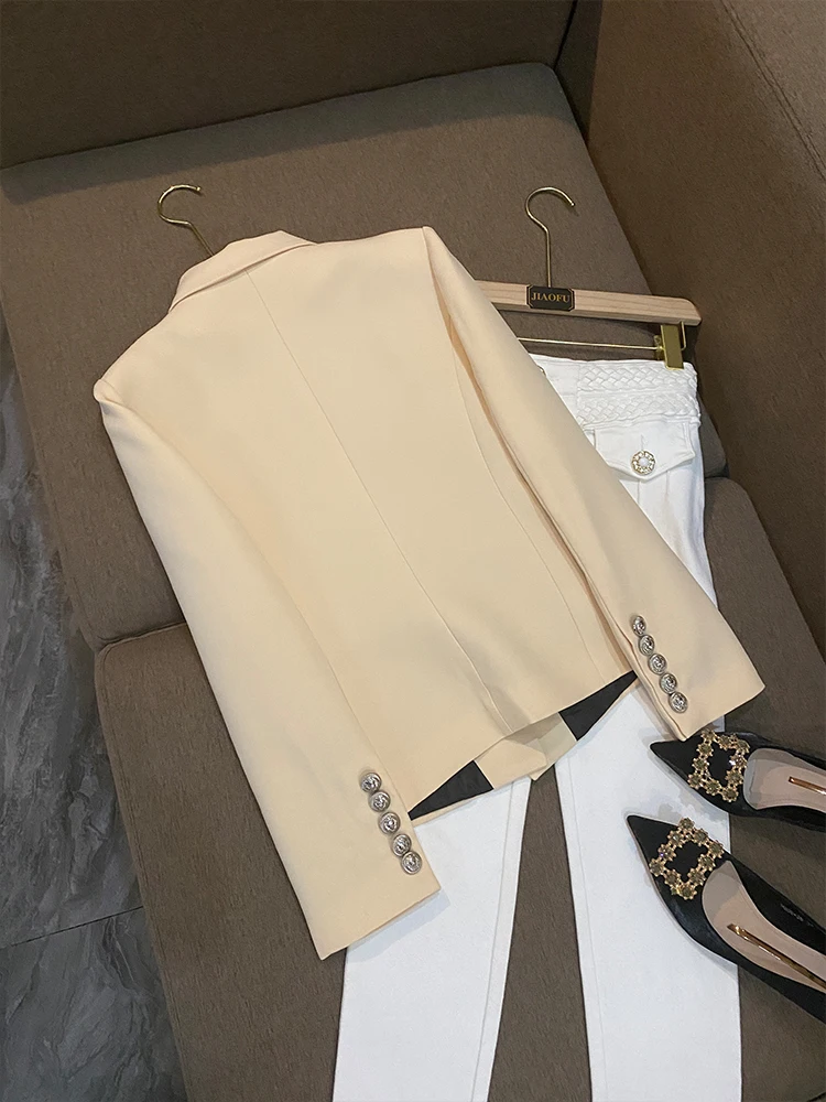 Брендовый дизайнерский классический подходящий ко всему Модный женский блестящий костюм цвета хаки в офисном стиле