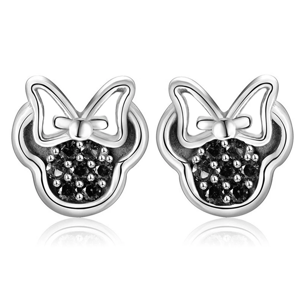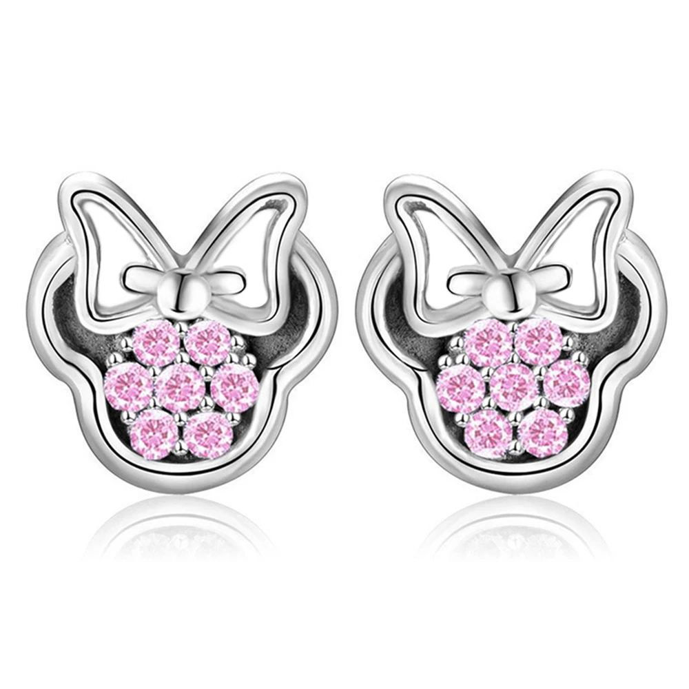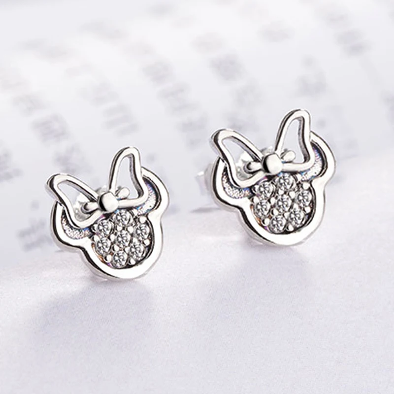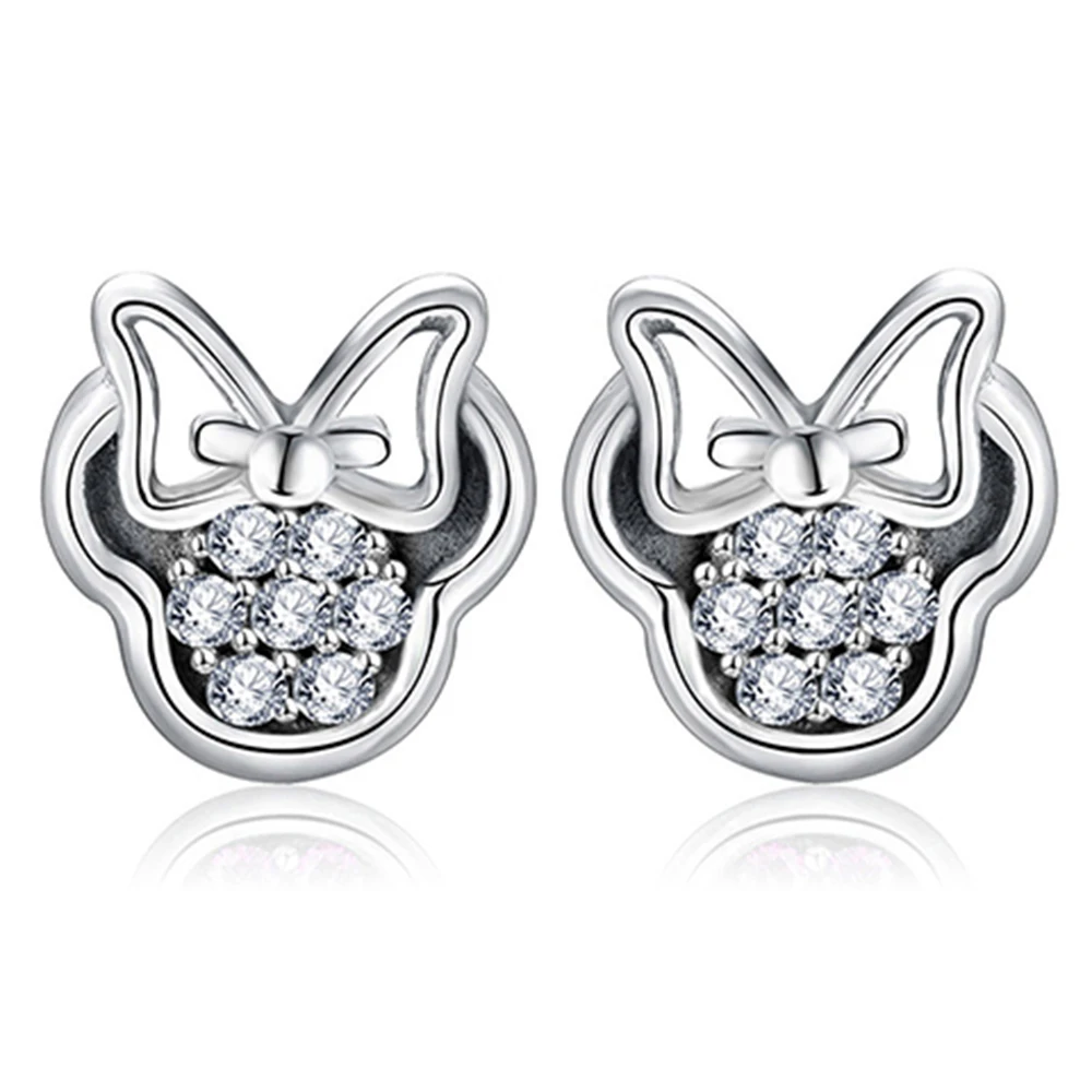 Высококачественные серьги-гвоздики серебряного цвета с фианитами для девочек, детские милые серьги в форме Минни, фотоподарок