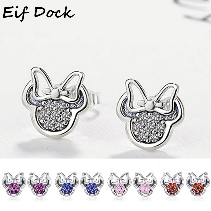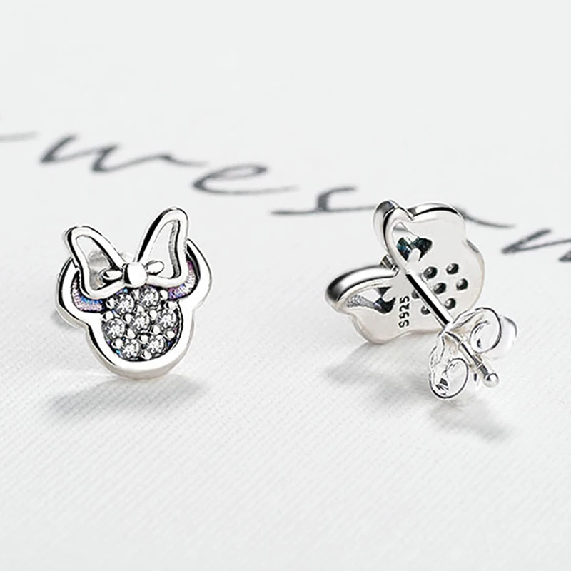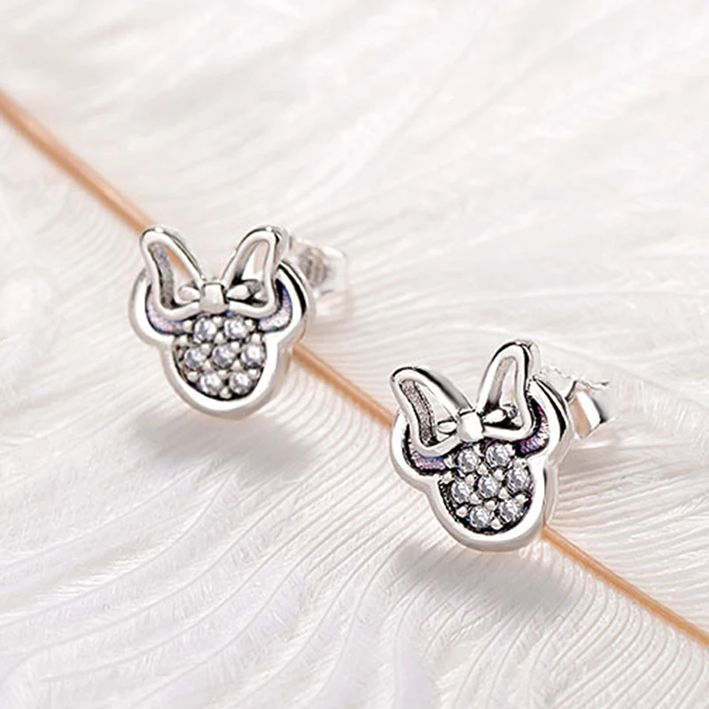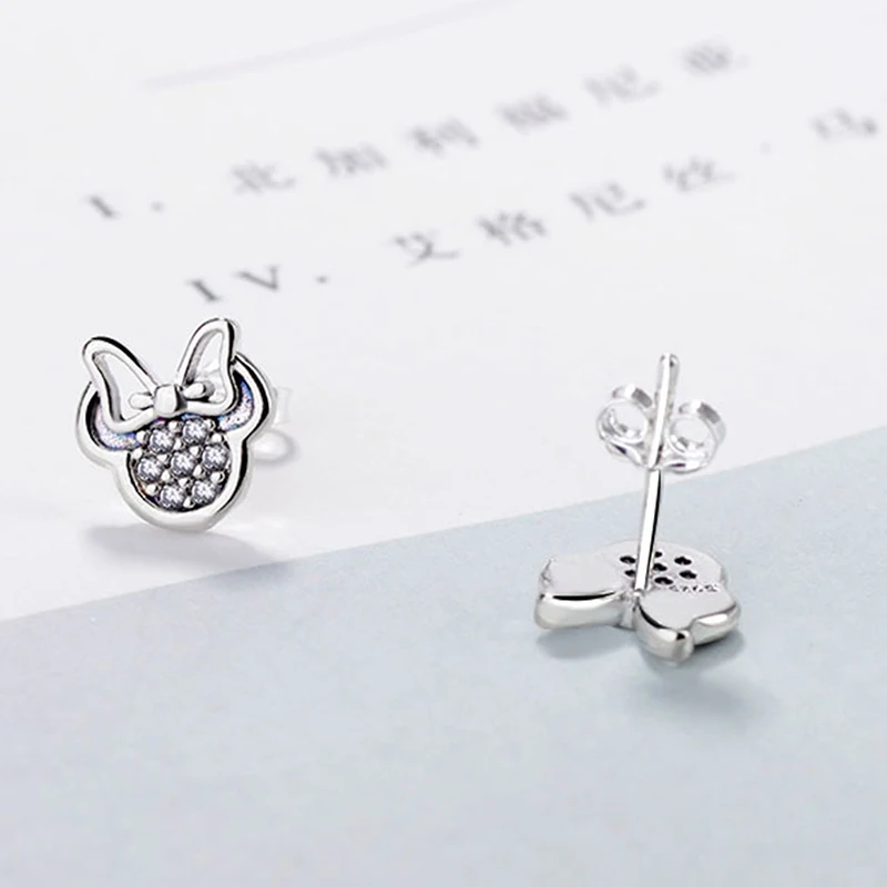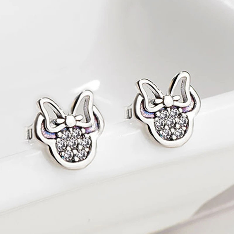 Высококачественные серьги-гвоздики серебряного цвета с фианитами для девочек, детские милые серьги в форме Минни, фотоподарок