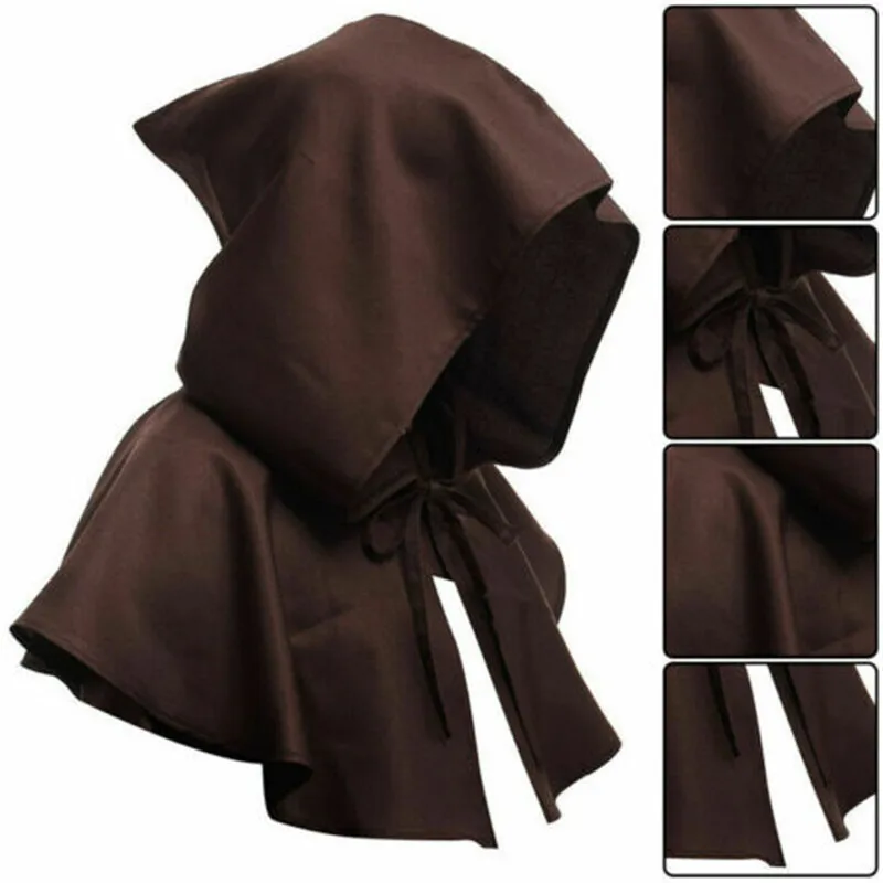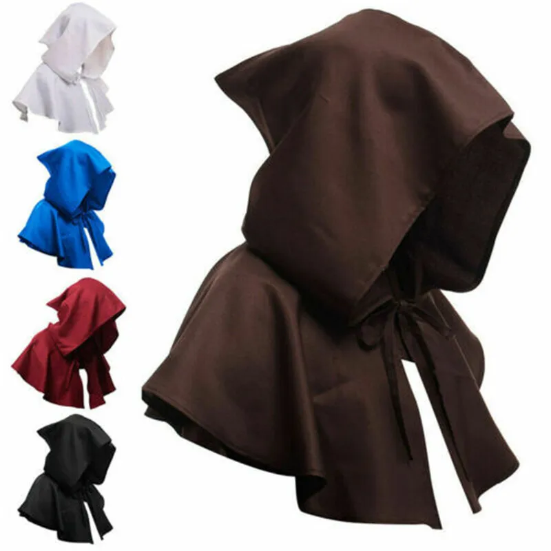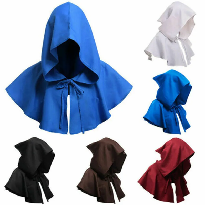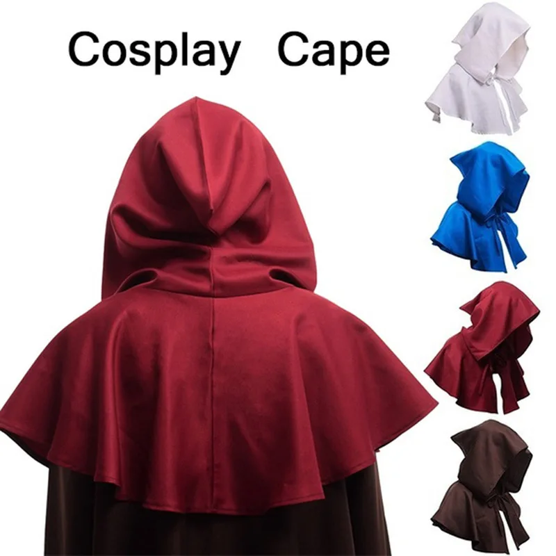 Унисекс, женский и мужской коричневый, черный, синий, белый, красный плащ с капюшоном для Хэллоуина, средневековые рыцари, крутая накидка, костюм для косплея
