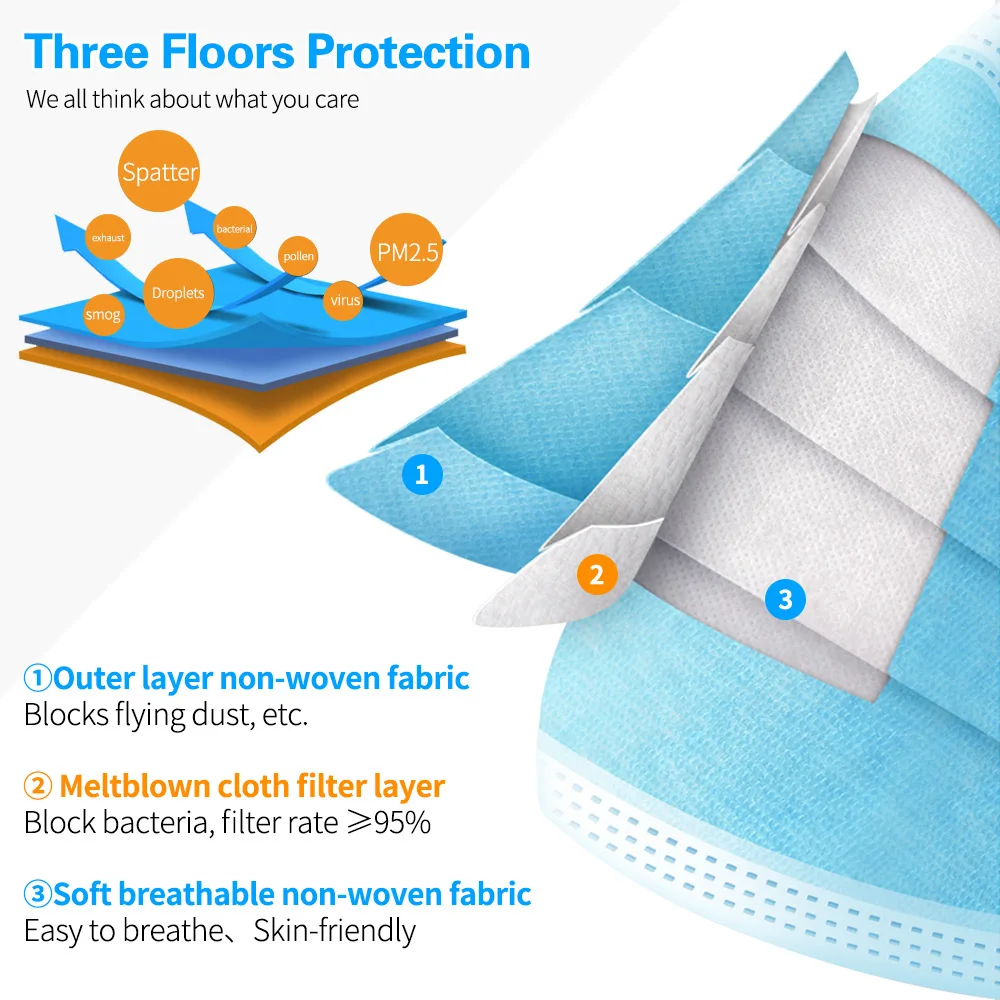 Одноразовая маска для лица 10-500 шт., Нетканая 3-слойная маска с фильтром для взрослых, хирургическая маска, хирургические маски