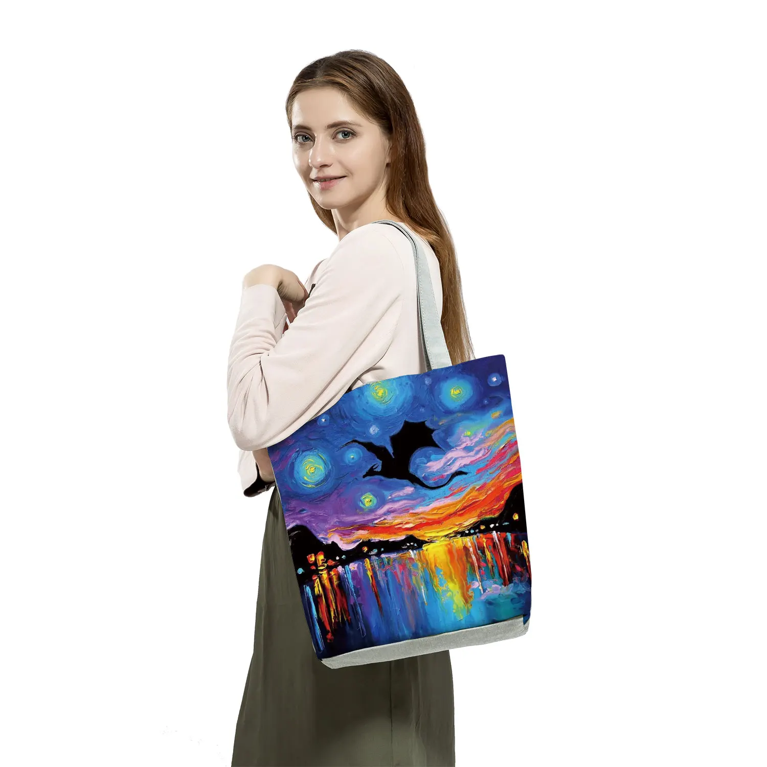 Сумка женская с принтом звёздного неба, саквояж на плечо с принтом собаки, большая Повседневная сумочка-тоут для покупок, мешок для путешествий и пляжа