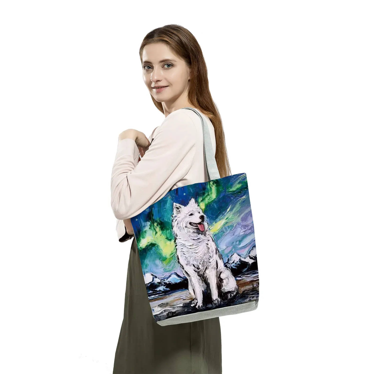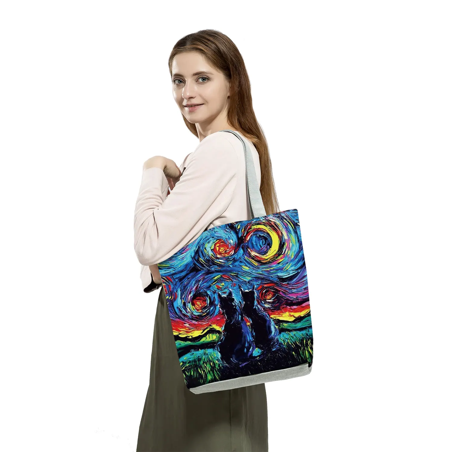 Новинка, сумки на плечо с принтом «звездное небо», «Собака», женская большая сумка, Женская Повседневная сумка для покупок, сумка для путешествий, пляжная сумка для женщин