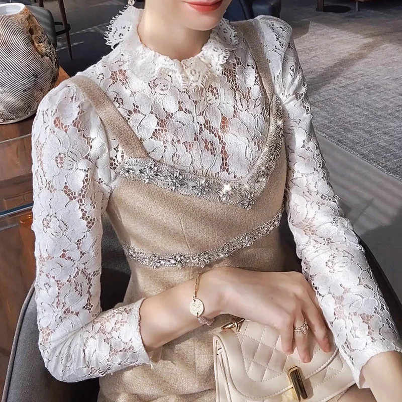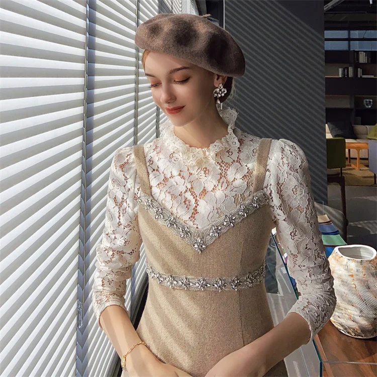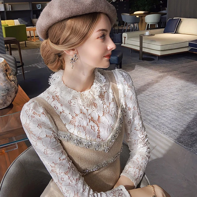 Dabuwawa элегантная однотонная Офисная Женская кружевная блузка с о...