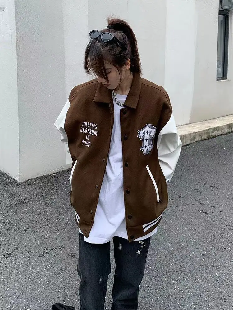 Новинка, винтажная куртка оверсайз, бейсбольная куртка с принтом, Женская парная куртка-бомбер, свободная куртка унисекс в стиле хип-хоп, уличная одежда