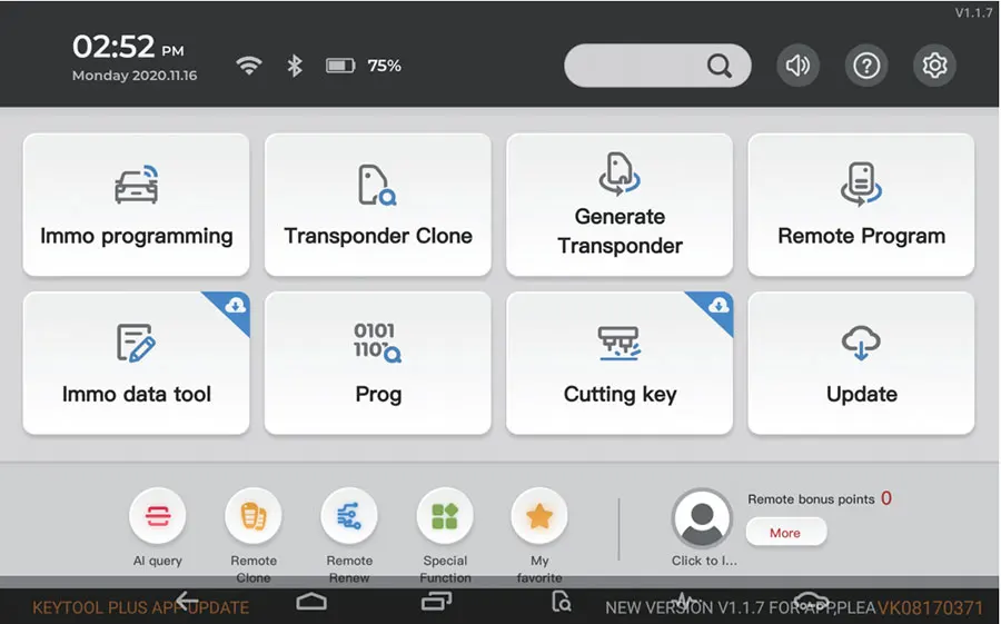 (Примечание: для выполнения определенных функций пользователям необходимо подключить инструмент для ключей плюс к определенным адаптерам и получить запрос на требуемую модель на интерфейсе. Функция эффективна только в продвинутой версии.)