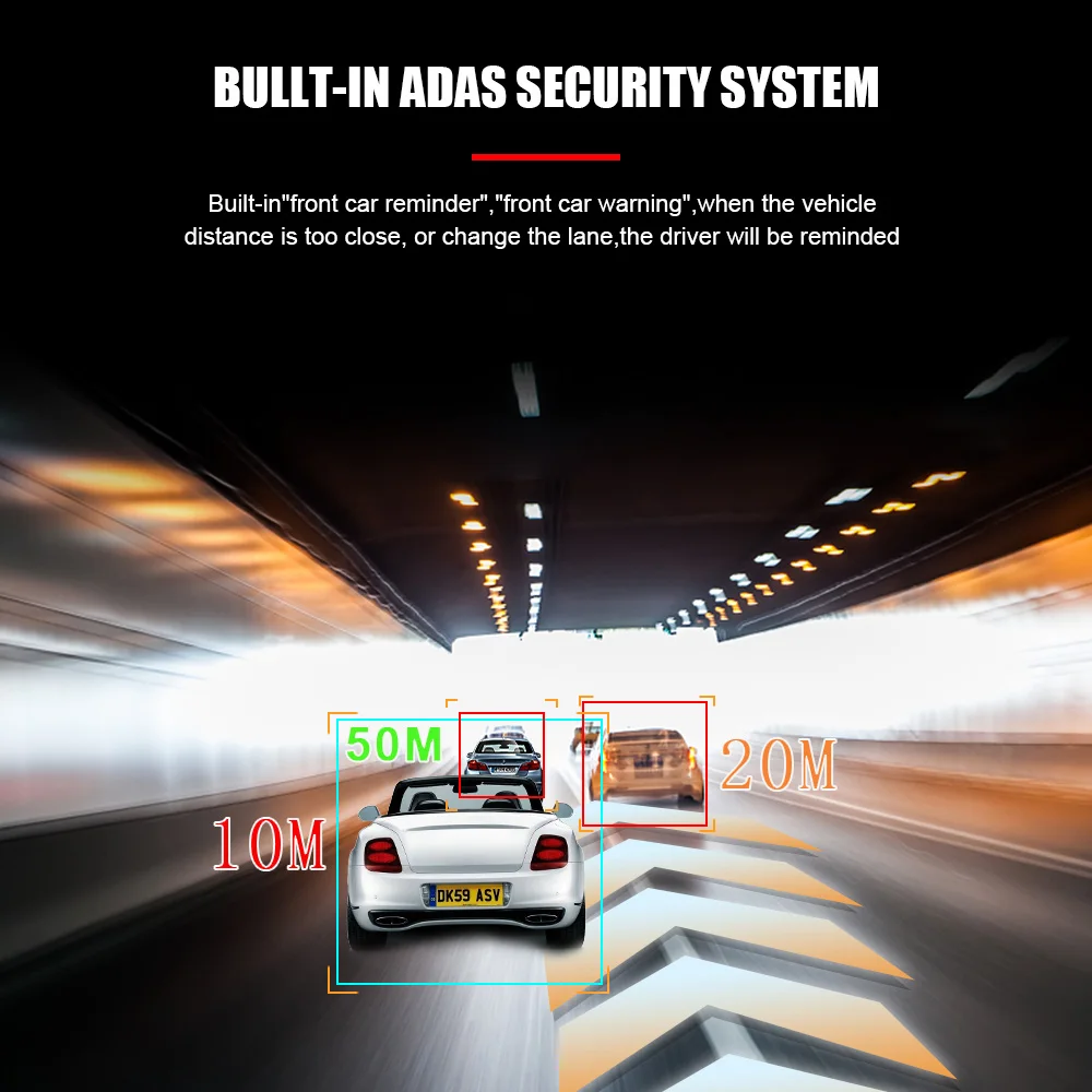 С функцией ADAS, когда устройство обнаруживает транспортное средство спереди, чтобы закрыть, будильник, чтобы напомнить автомобилистам, чтобы обратить внимание на дорожные условия или ненормальные транспортные средства.