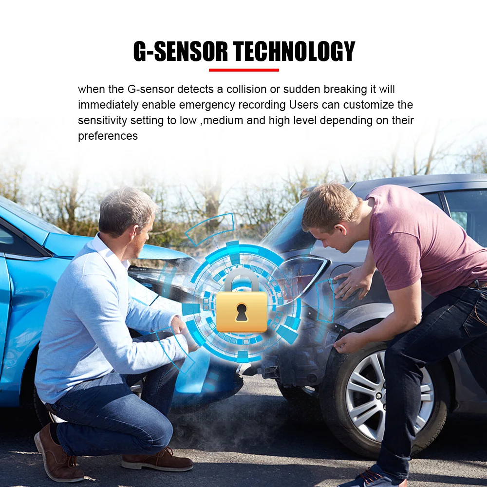 G-сенсор: если столкновение происходит в транспортном средстве, Интегрированный Датчик G shock автоматически блокирует записанное видео и обеспечивает точную запись событий.