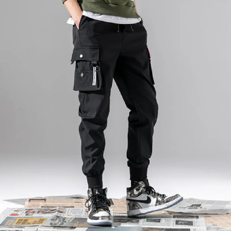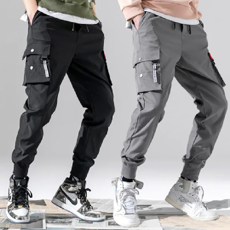Брюки мужские Джоггеры в стиле хип-хоп, штаны-султанки, однотонные мужские брюки-карго, облегающие спортивные штаны с несколькими карманами, осень 2021