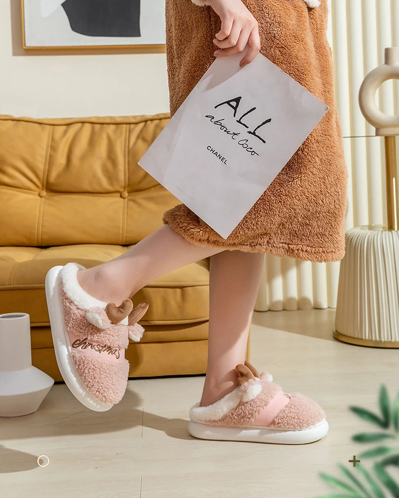 2021 Мультяшные рождественские хлопковые тапочки с оленем зимние домашние теплые тапочки на толстой подошве на платформе удобная обувь для женщин и мужчин для влюбленных