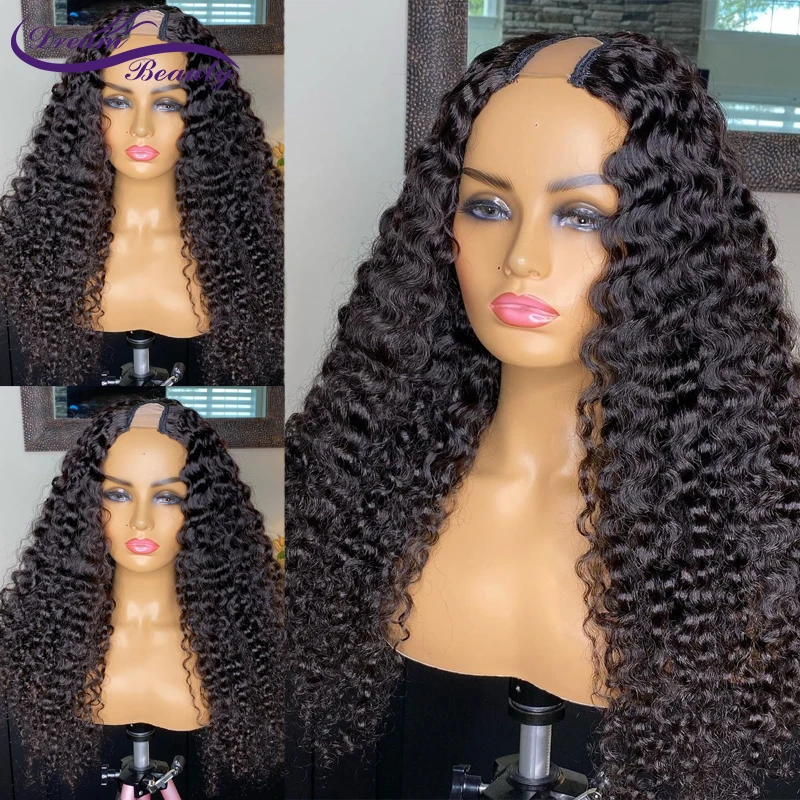 Кудрявые U-образные парики, парик U-образной формы из человеческих волос, перуанские парики Remy из человеческих волос для черных женщин, без клея, плотность 200%