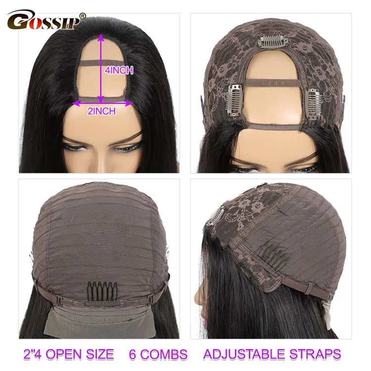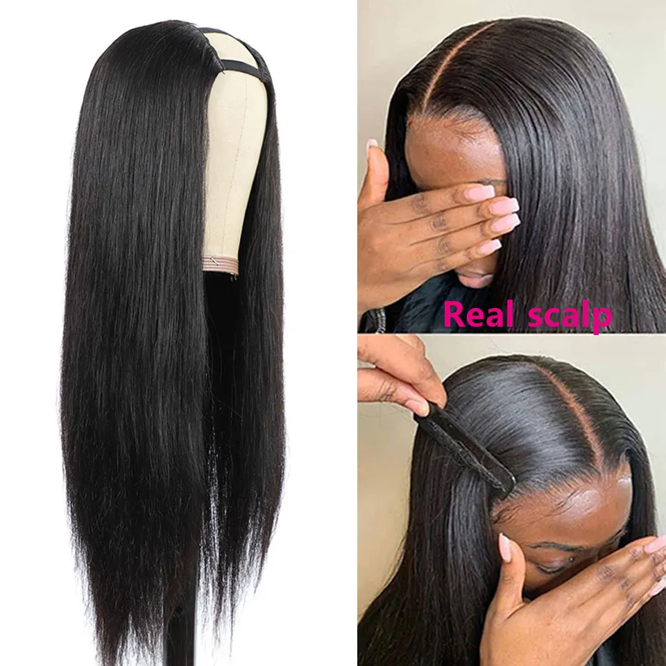 Недорогой парик с U-образной частью, человеческие волосы с зажимами, безклеевые прямые парики с V-образным вырезом, парики на половину объема из человеческих волос для женщин, парик из человеческих волос Remy