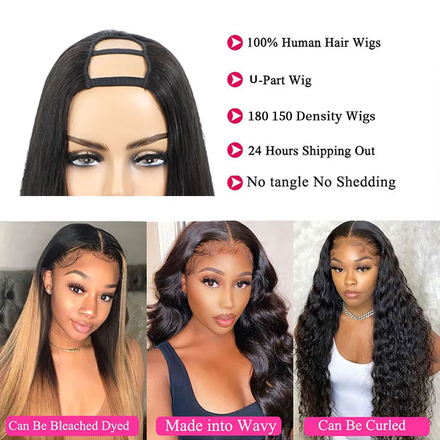 Дешевые 180 Bone прямые U часть парик человеческие волосы с клипсами бразильские U Часть Боб человеческие волосы половина парики для женщин Человеческие волосы Remy