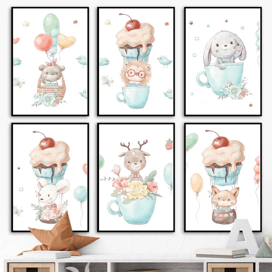 Милый олень, лиса, кролик, динозавр, Лев, Детская настенная живопись, холст, скандинавские постеры и принты, настенные фотографии, декор для детской комнаты