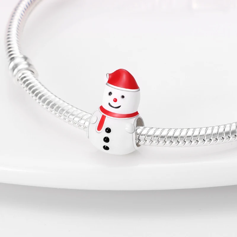 Серебряные бусины-талисманы plata of ley 925 с рождественским снеговиком подходят к оригинальному браслету пандоры ожерелье женское модное изящное ювелирное изделие