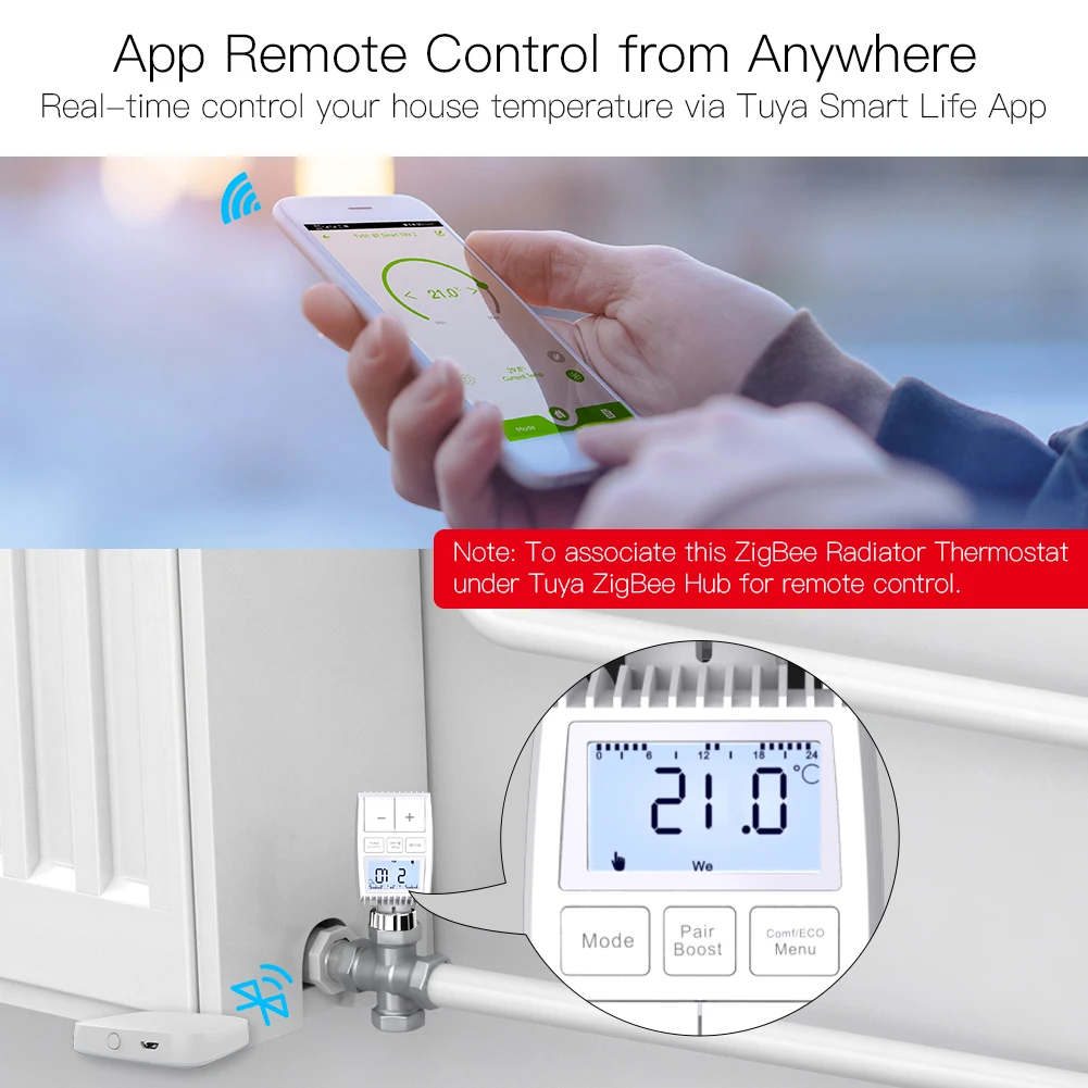 ТуяBluetoothНовый мини радиатор привод клапан умный программируемый термостат регулятор температурыФункциональный Bluetooth SigmeshВнешний датчик точный нагреватель TRV термостатический радиатор клапан Голосовое управление с Alexa