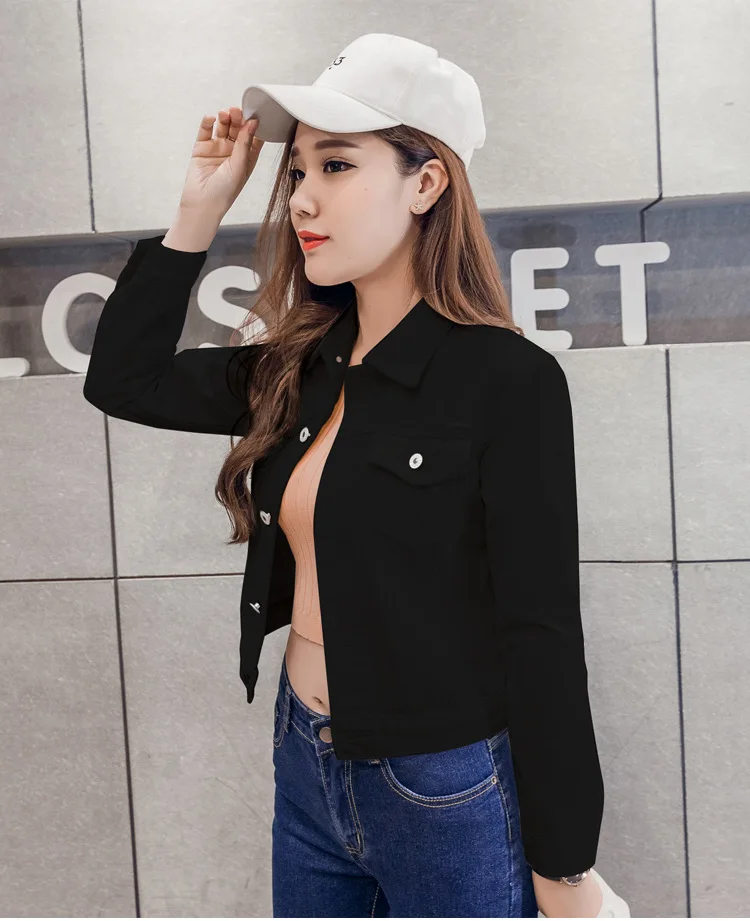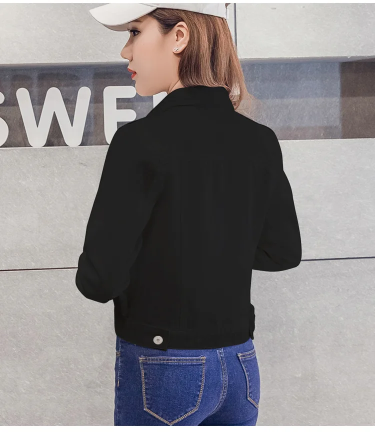 Женская джинсовая куртка, короткая черная или белая джинсовая куртк...