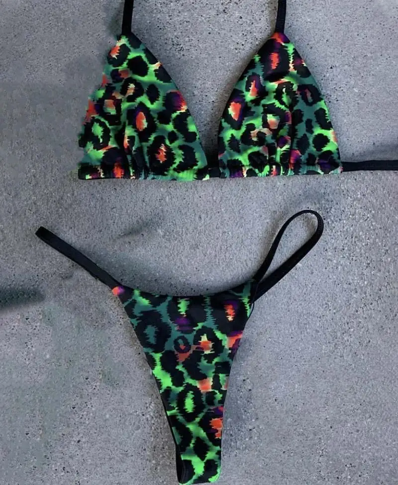 Zrtak леопардовые бикини 2021 женские купальники с лямкой на шее комплект бикини с сексуальными растениями микро-стринги бандажные купальники с животным принтом для женщин