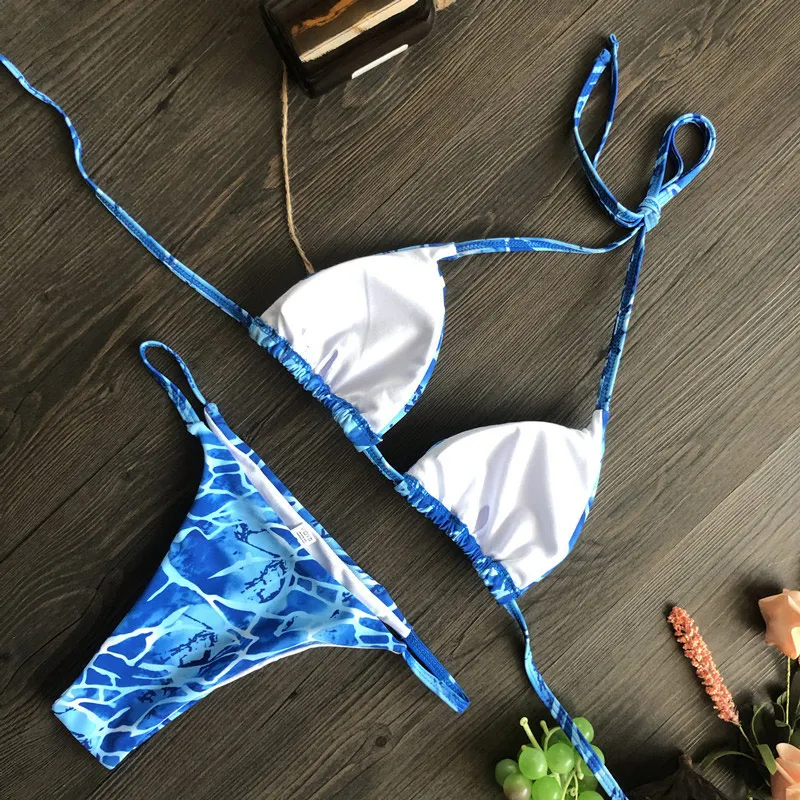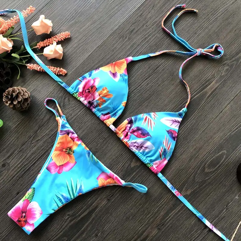 ZRTAK 2020, женские бикини с цветочным принтом, синий купальник в с...