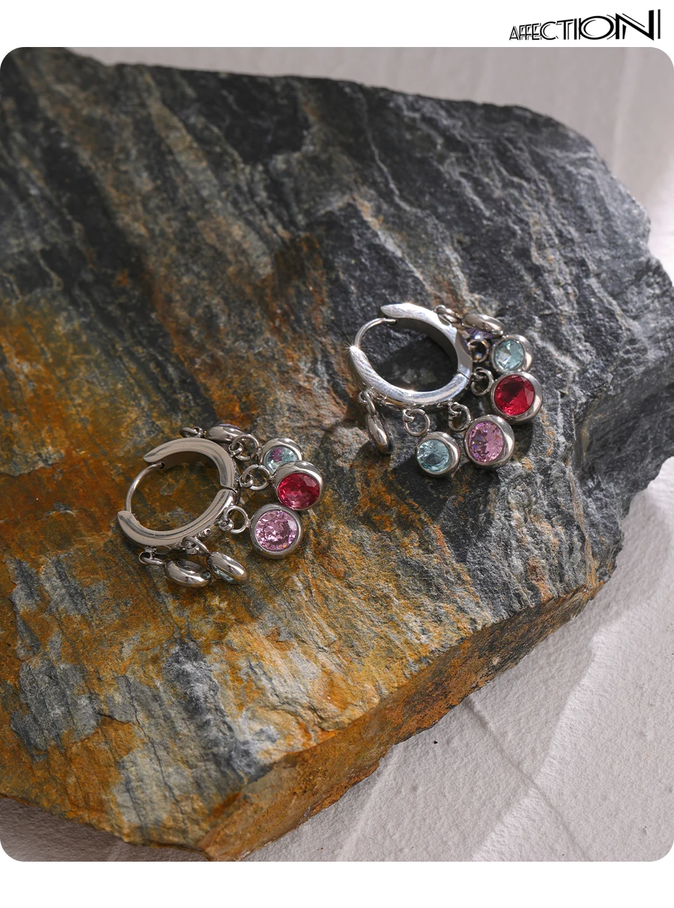 Женские серьги-кольца из нержавеющей стали с фианитом