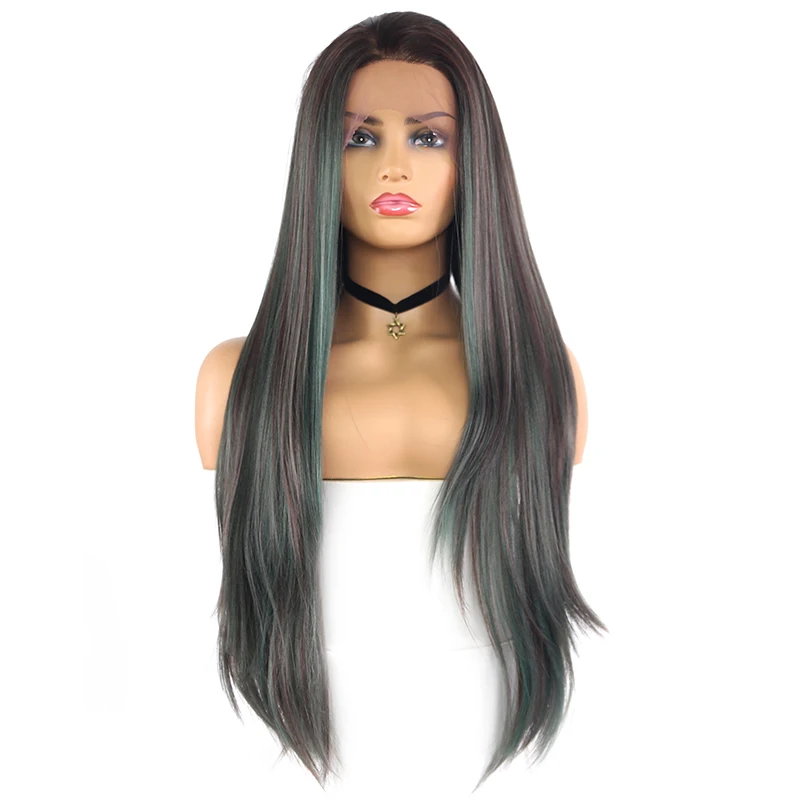 13x 4 женские парики со шнуровкой спереди, женский длинный прямой синтетический парик спереди, коричневый, зеленый, смешанные цвета, парики для повседневвечерние, косплей