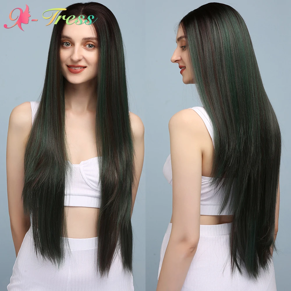 Длинные прямые парики 13x4 на фронтальной сетке для женщин X-TRESS ...