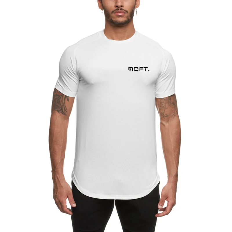 Новинка, мужские трендовые повседневные футболки, одежда для бега, дышащие спортивные модные сетчатые быстросохнущие футболки с коротким рукавом для фитнеса